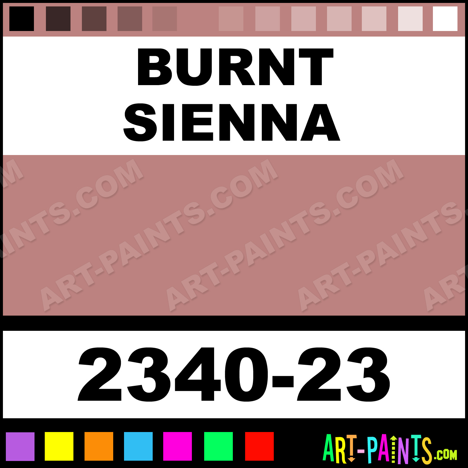 This beautiful Hard Pastel shade is called Burnt Sienna, and comes from a company called Conte A Paris. Their product number, along with the HTML color code, RGB, and CMYK codes are listed below. This Beautiful Shade of Burnt Sienna and others can be found in the Conte A Paris Hard Art Paint Gallery! Also be sure to browse through the other wonderful Professional Color Galleries to see more of Conte A Paris Hard Pastel Brand Paints and other Paint Manufacturers. And as always, Paint Paint Paint! -Art-Paints.com