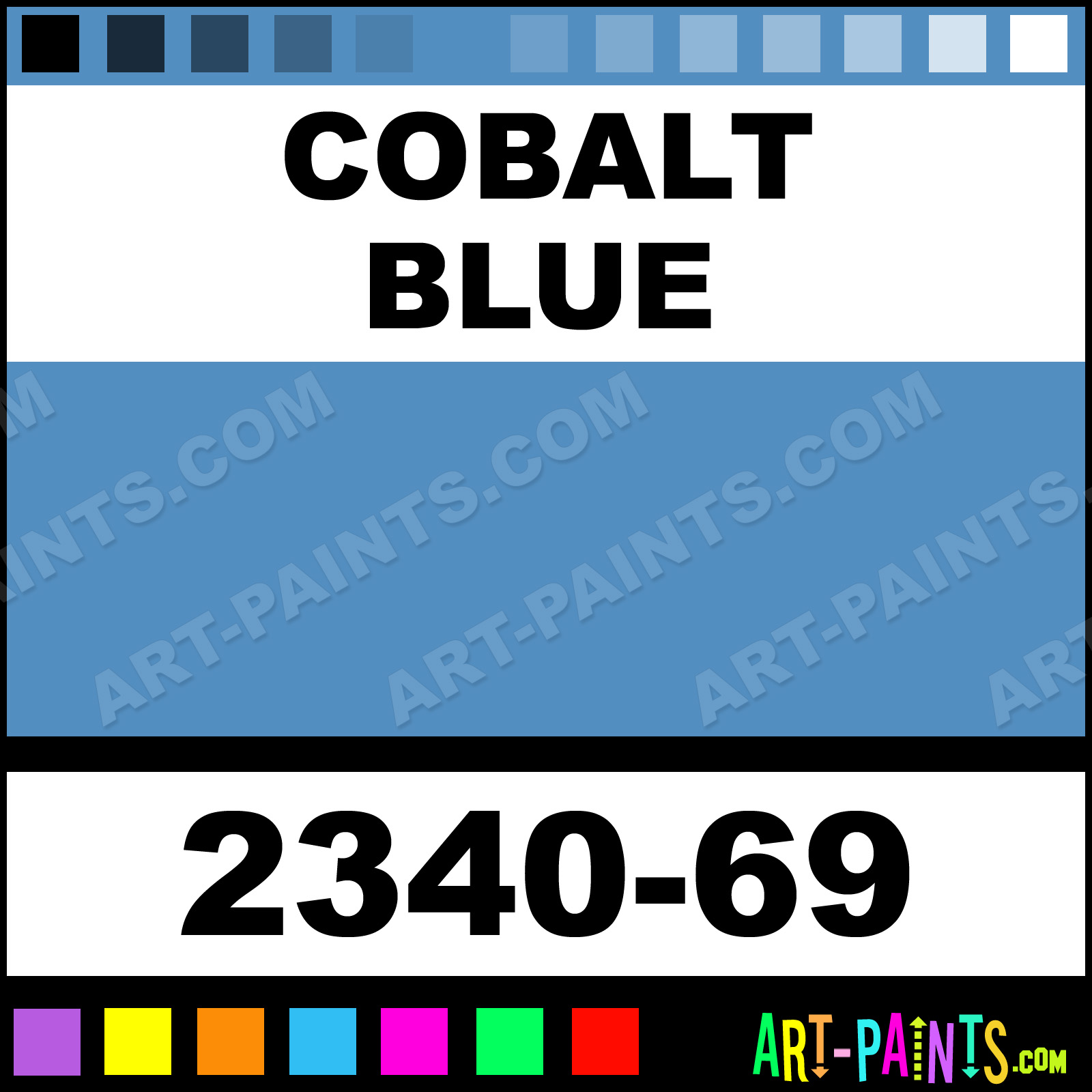 This beautiful Hard Pastel shade is called Cobalt Blue, and comes from a company called Conte A Paris. Their product number, along with the HTML color code, RGB, and CMYK codes are listed below. This Beautiful Shade of Cobalt Blue and others can be found in the Conte A Paris Hard Art Paint Gallery! Also be sure to browse through the other wonderful Professional Color Galleries to see more of Conte A Paris Hard Pastel Brand Paints and other Paint Manufacturers. And as always, Paint Paint Paint! -Art-Paints.com