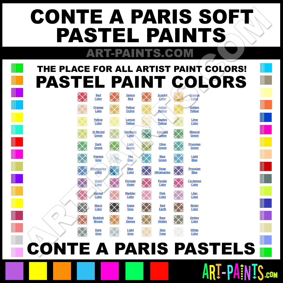 Conte A Paris knows Pastel paints! They make a wonderful brand of paint called Conte A Paris Soft Pastel Colors that suits all types of artists. They strive to perfect the process of color and are one of the most popular Pastel Paint Brand companies in the world. Enjoy their entire paint brand collection from the list below. Conte A Paris makes wonderful Artists Paints that everyone is sure to enjoy! Choose an Pastel Paint Color below to view that Hue and all their great related color paints.   -Art-Paints.com