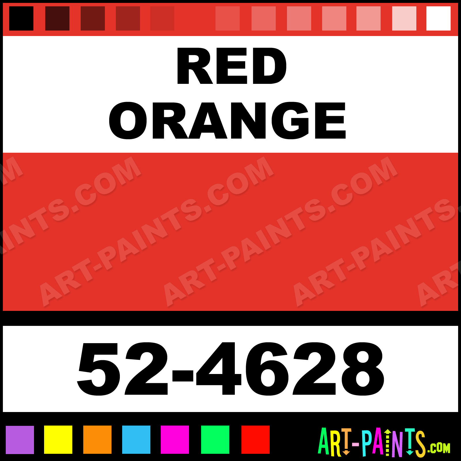 This beautiful Oil 28 Set Pastel shade is called Red Orange, and comes from a company called Crayola. Their product number, along with the HTML color code, RGB, and CMYK codes are listed below. This Beautiful Shade of Red Orange and others can be found in the Crayola Oil 28 Set Art Paint Gallery! Also be sure to browse through the other wonderful Professional Color Galleries to see more of Crayola Oil 28 Set Pastel Brand Paints and other Paint Manufacturers. And as always, Paint Paint Paint! -Art-Paints.com