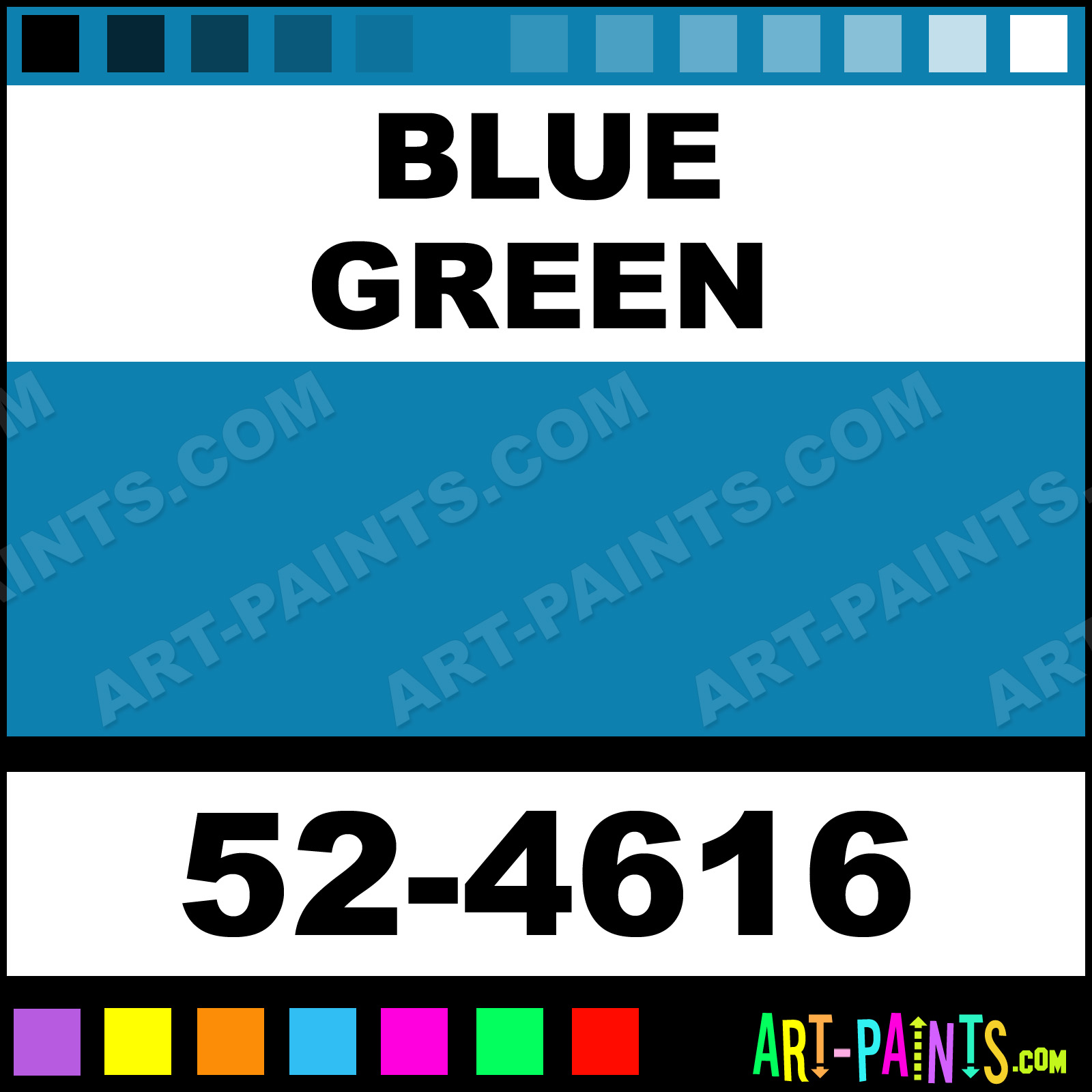 This beautiful Oil Set Pastel shade is called Blue Green, and comes from a company called Crayola. Their product number, along with the HTML color code, RGB, and CMYK codes are listed below. This Beautiful Shade of Blue Green and others can be found in the Crayola Oil Set Art Paint Gallery! Also be sure to browse through the other wonderful Professional Color Galleries to see more of Crayola Oil Set Pastel Brand Paints and other Paint Manufacturers. And as always, Paint Paint Paint! -Art-Paints.com