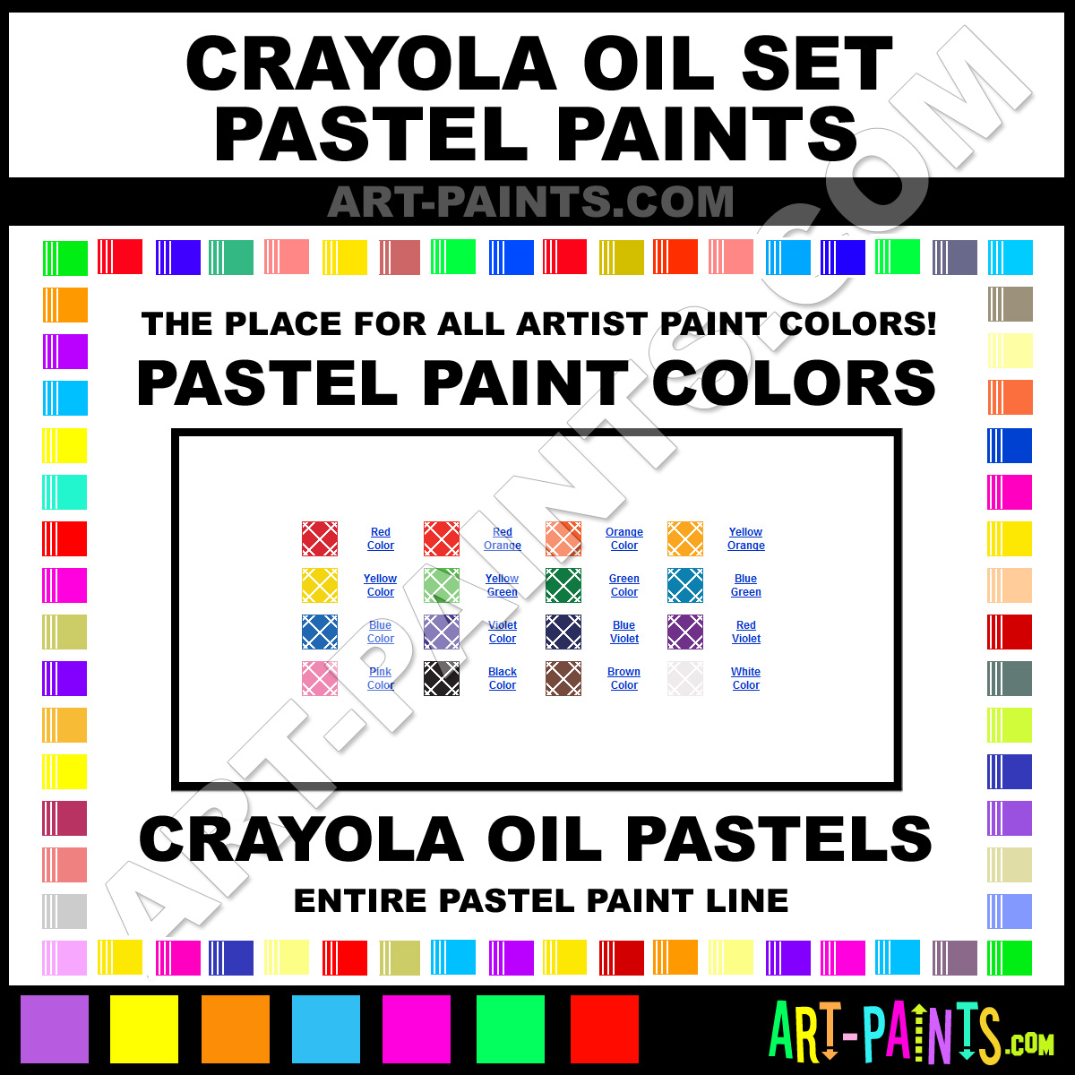 Crayola knows Pastel paints! They make a wonderful brand of paint called Crayola Oil Set Pastel Colors that suits all types of artists. They strive to perfect the process of color and are one of the most popular Pastel Paint Brand companies in the world. Enjoy their entire paint brand collection from the list below. Crayola makes wonderful Artists Paints that everyone is sure to enjoy! Choose an Pastel Paint Color below to view that Hue and all their great related color paints. Paint on!     -Art-Paints.com
