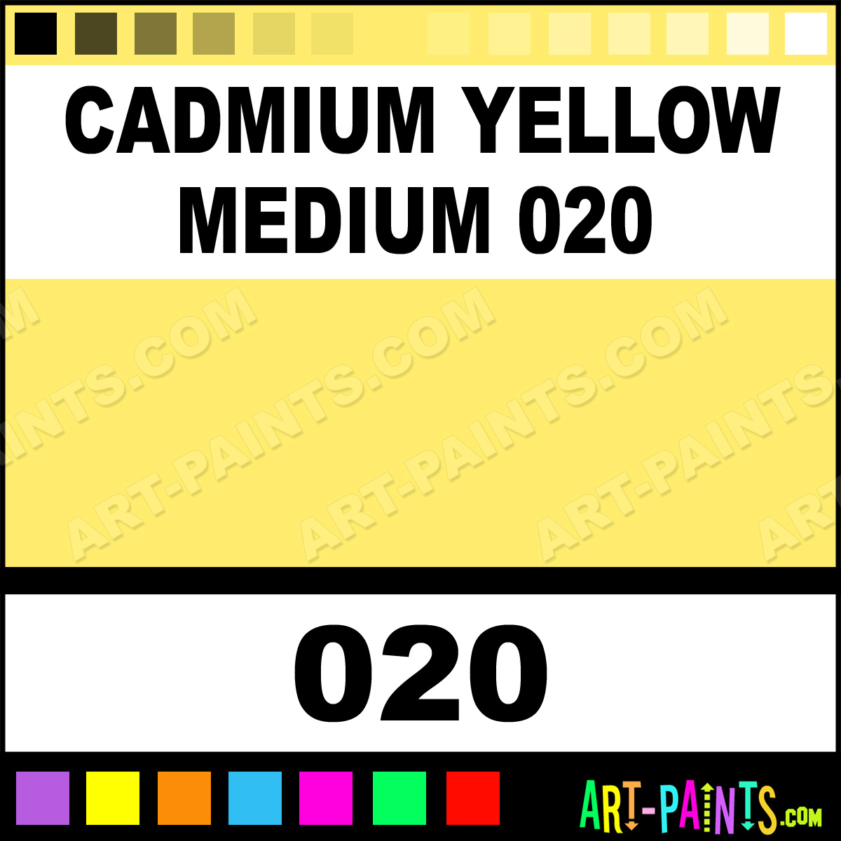 Cadmium Yellow Light 019 Cadmium Yellow Deep 021 Cadmium Yellow Medium 020D Chartreuse 025L Cadmium Yellow Light 019D Cadmium Yellow Deep Light 021L Cadmium Yellow Green 024D