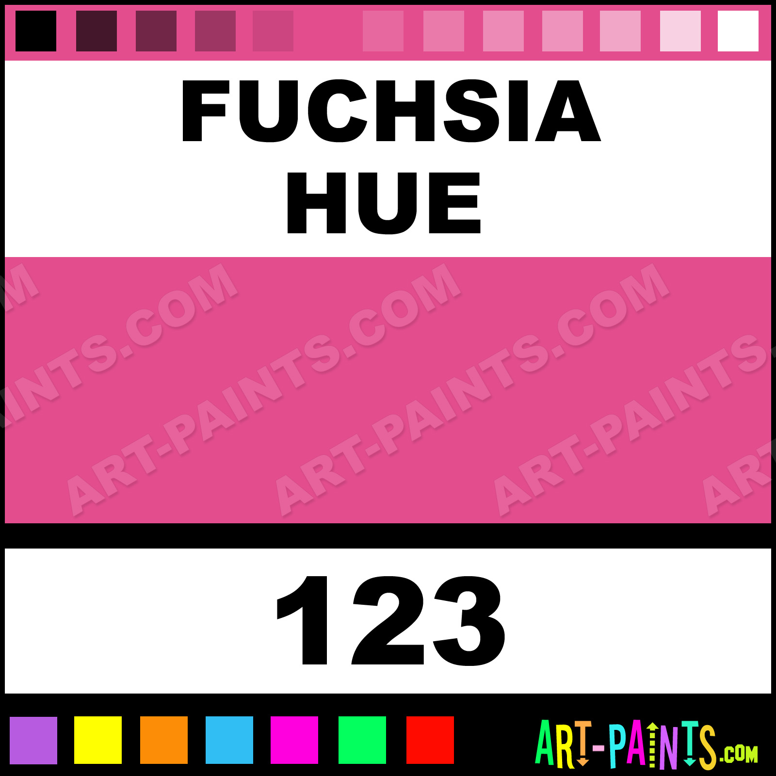 This beautiful Polychromos Pastel shade is called Fuchsia, and comes from a company called Faber Castell. Their product number, along with the HTML color code, RGB, and CMYK codes are listed below. This Beautiful Shade of Fuchsia and others can be found in the Faber Castell Polychromos Art Paint Gallery! Also be sure to browse through the other wonderful Professional Color Galleries to see more of Faber Castell Polychromos Pastel Brand Paints and other Paint Manufacturers. And as always, Paint Paint Paint! -Art-Paints.com