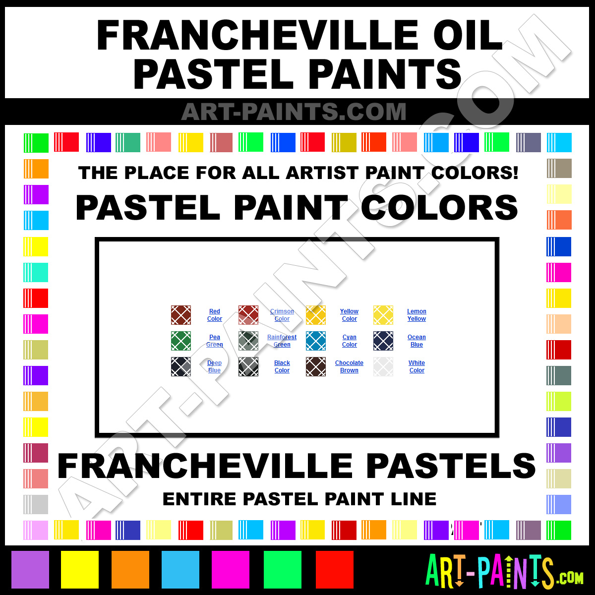 Francheville knows Pastel paints! They make a wonderful brand of paint called Francheville Artist Oil Pastel Colors that suits all types of artists. They strive to perfect the process of color and are one of the most popular Pastel Paint Brand companies in the world. Enjoy their entire paint brand collection from the list below. Francheville makes wonderful Artists Paints that everyone is sure to enjoy! Choose an Pastel Paint Color below to view that Hue and all their great related color paints.     -Art-Paints.com