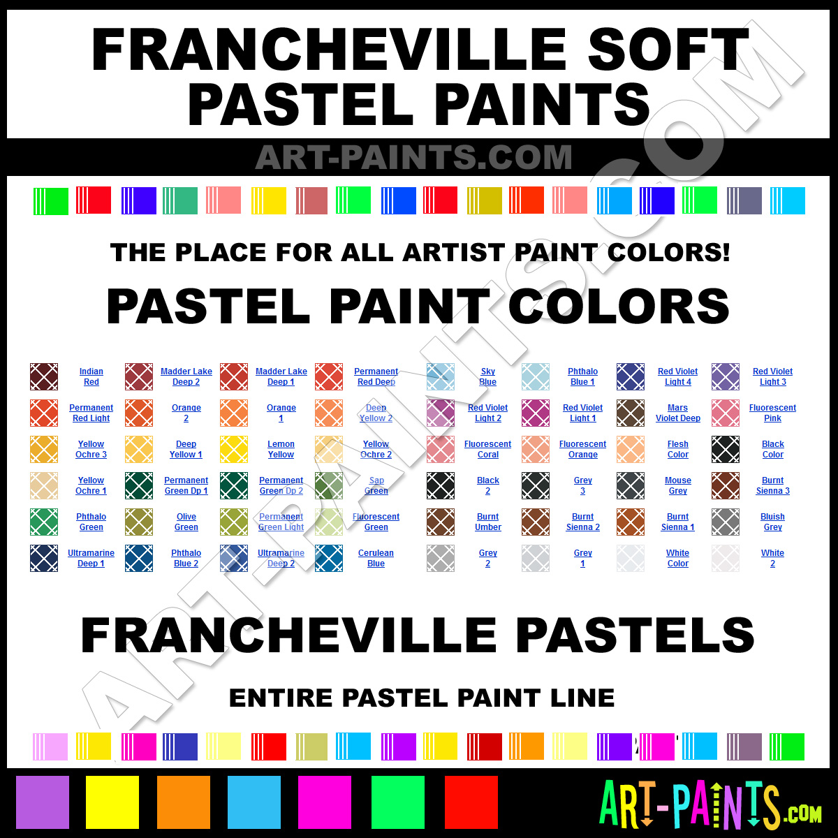 Francheville knows Pastel paints! They make a wonderful brand of paint called Francheville Artist Soft Pastel Colors that suits all types of artists. They strive to perfect the process of color and are one of the most popular Pastel Paint Brand companies in the world. Enjoy their entire paint brand collection from the list below. Francheville makes wonderful Artists Paints that everyone is sure to enjoy! Choose an Pastel Paint Color below to view that Hue and all their great related color paints.     -Art-Paints.com