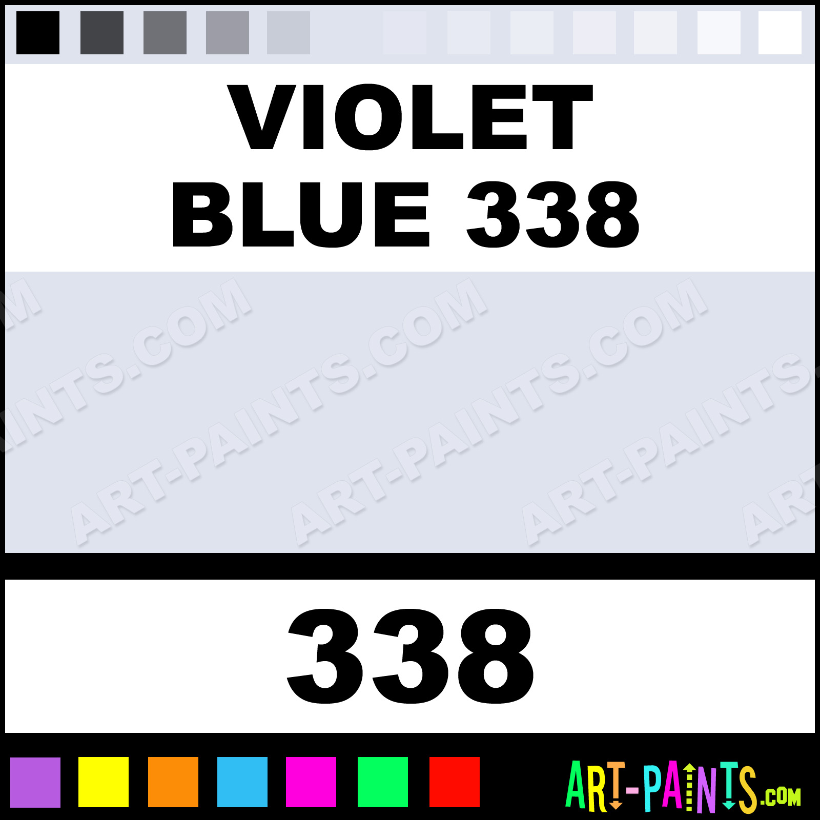 Violet Blue 337 Prussian Blue 295 Cobalt Blue 359 Bluish Purple 284 Violet Lake 364 Bluish Purple 282 Bluish Purple 281