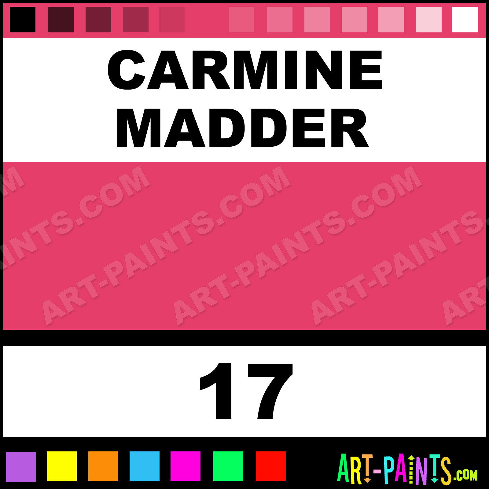 This beautiful Academy Pastel shade is called Carmine Madder, and comes from a company called Holbein. Their product number, along with the HTML color code, RGB, and CMYK codes are listed below. This Beautiful Shade of Carmine Madder and others can be found in the Holbein Academy Art Paint Gallery! Also be sure to browse through the other wonderful Professional Color Galleries to see more of Holbein Academy Pastel Brand Paints and other Paint Manufacturers. And as always, Paint Paint Paint! -Art-Paints.com