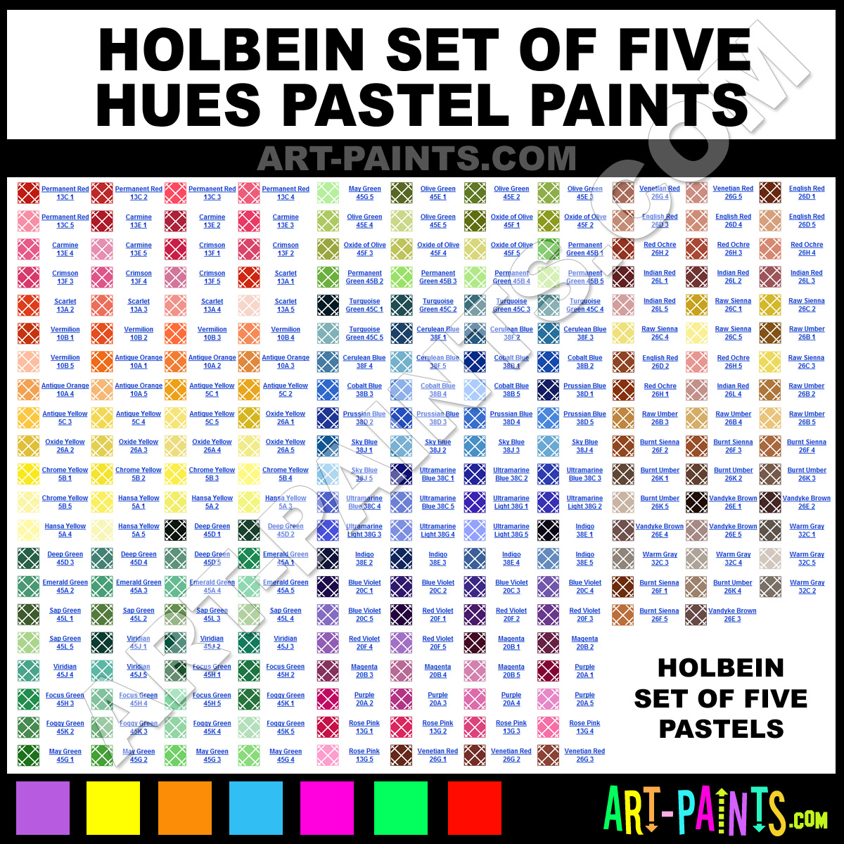 Holbein makes a beautiful Five Hues Set Paint Brand. With a complete line of Pastel Color Paints, 215 colors in all, available in beautiful hues and colors, they will no doubt keep you painting and smiling at the same time. This brand is very unique and exquisite!