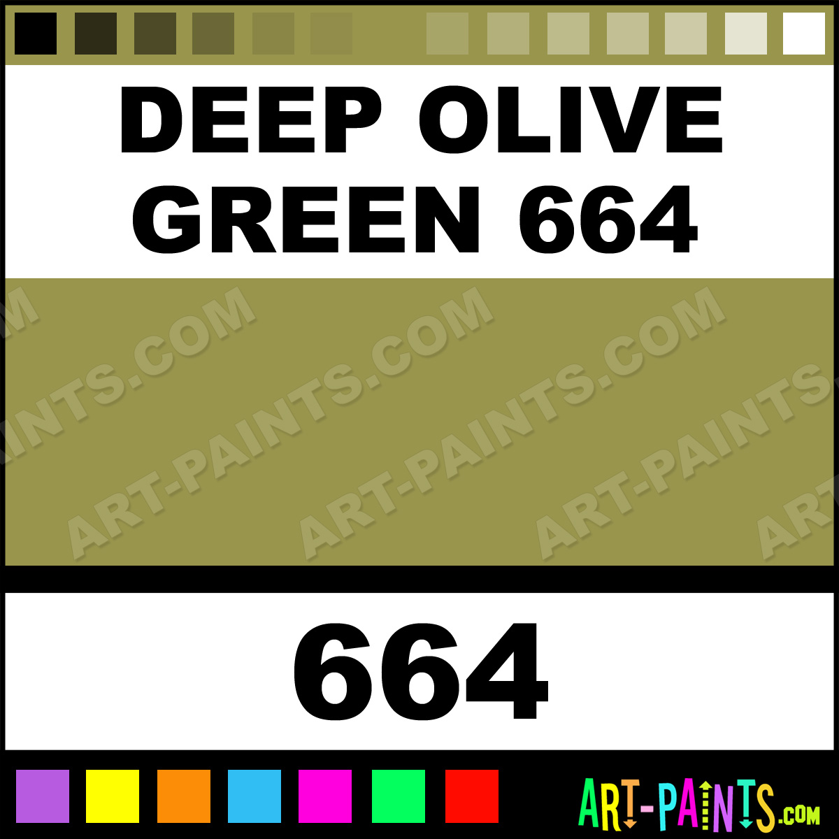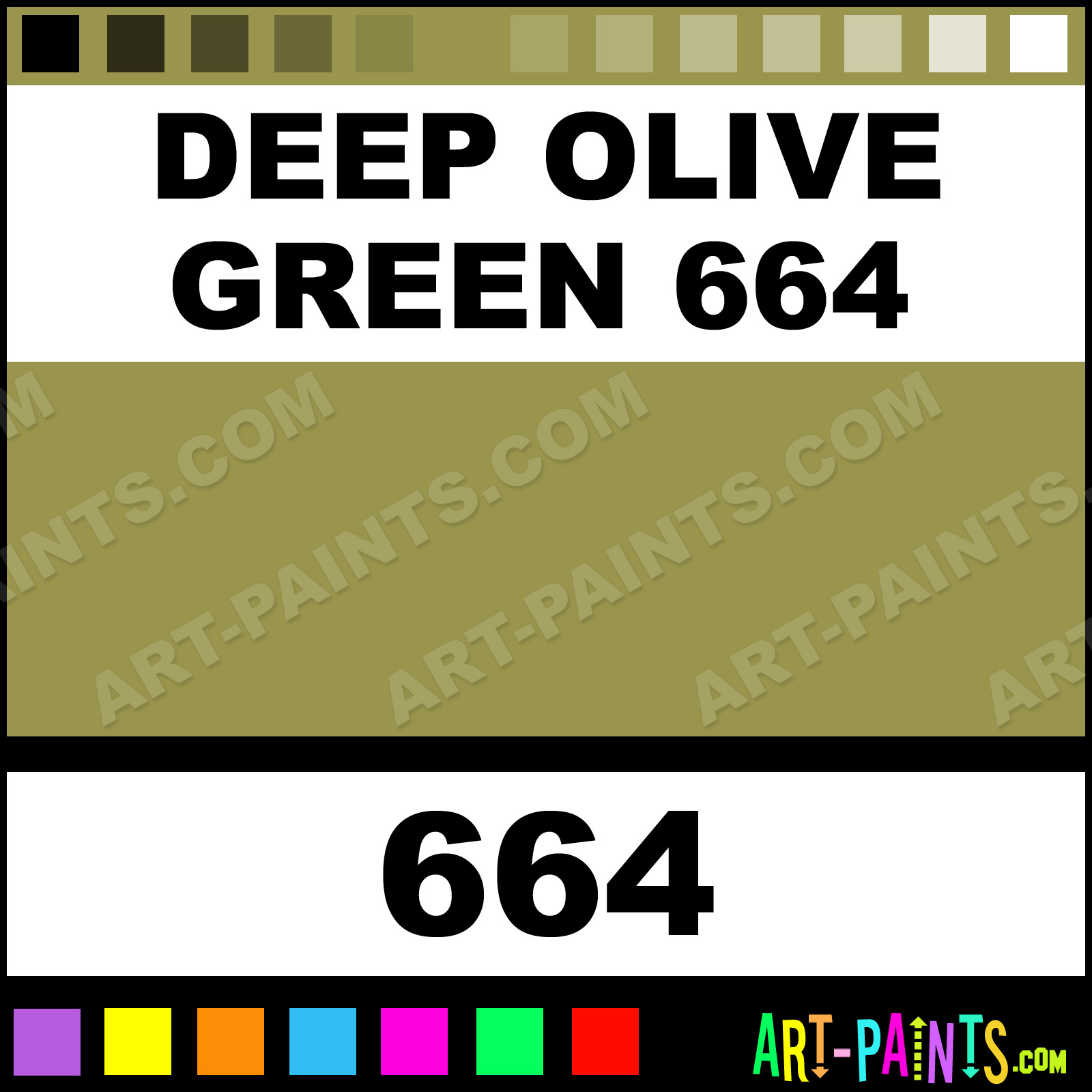 This beautiful Soft Pastel shade is called Deep Olive Green 664, and comes from a company called Mount Vision. Their product number, along with the HTML color code, RGB, and CMYK codes are listed below. This Beautiful Shade of Deep Olive Green 664 and others can be found in the Mount Vision Soft Art Paint Gallery! Also be sure to browse through the other wonderful Professional Color Galleries to see more of Mount Vision Soft Pastel Brand Paints and other Paint Manufacturers. And as always, Paint Paint Paint! -Art-Paints.com