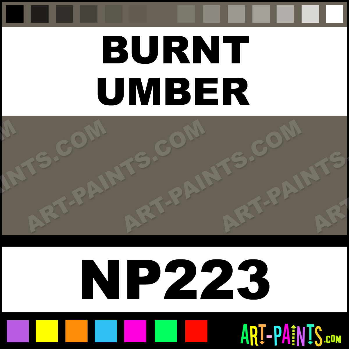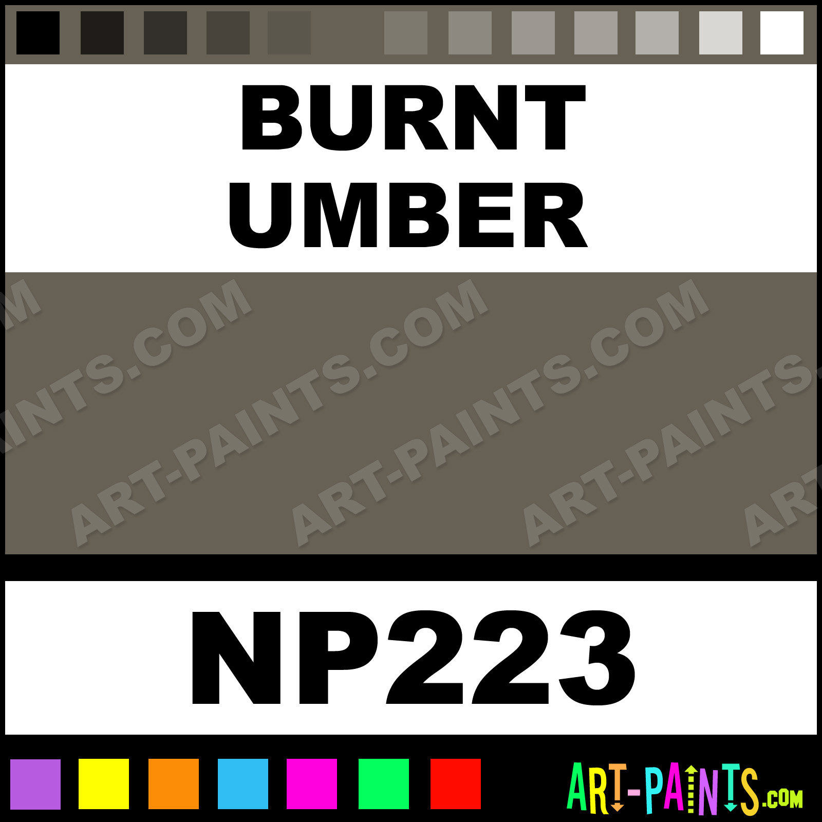 This beautiful Nupastel 48 Set Pastel shade is called Burnt Umber, and comes from a company called Prismacolor. Their product number, along with the HTML color code, RGB, and CMYK codes are listed below. This Beautiful Shade of Burnt Umber and others can be found in the Prismacolor Nupastel 48 Set Art Paint Gallery! Also be sure to browse through the other wonderful Professional Color Galleries to see more of Prismacolor Nupastel 48 Set Pastel Brand Paints and other Paint Manufacturers. And as always, Paint Paint Paint! -Art-Paints.com