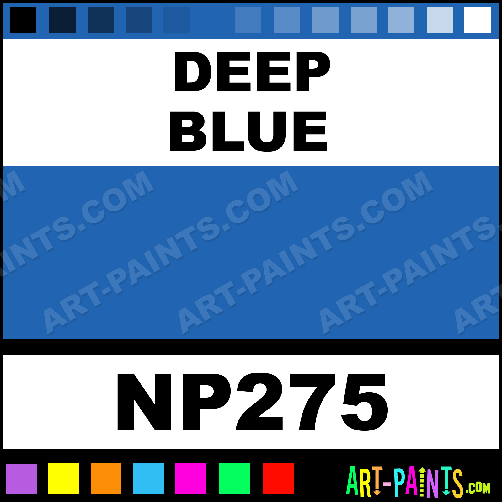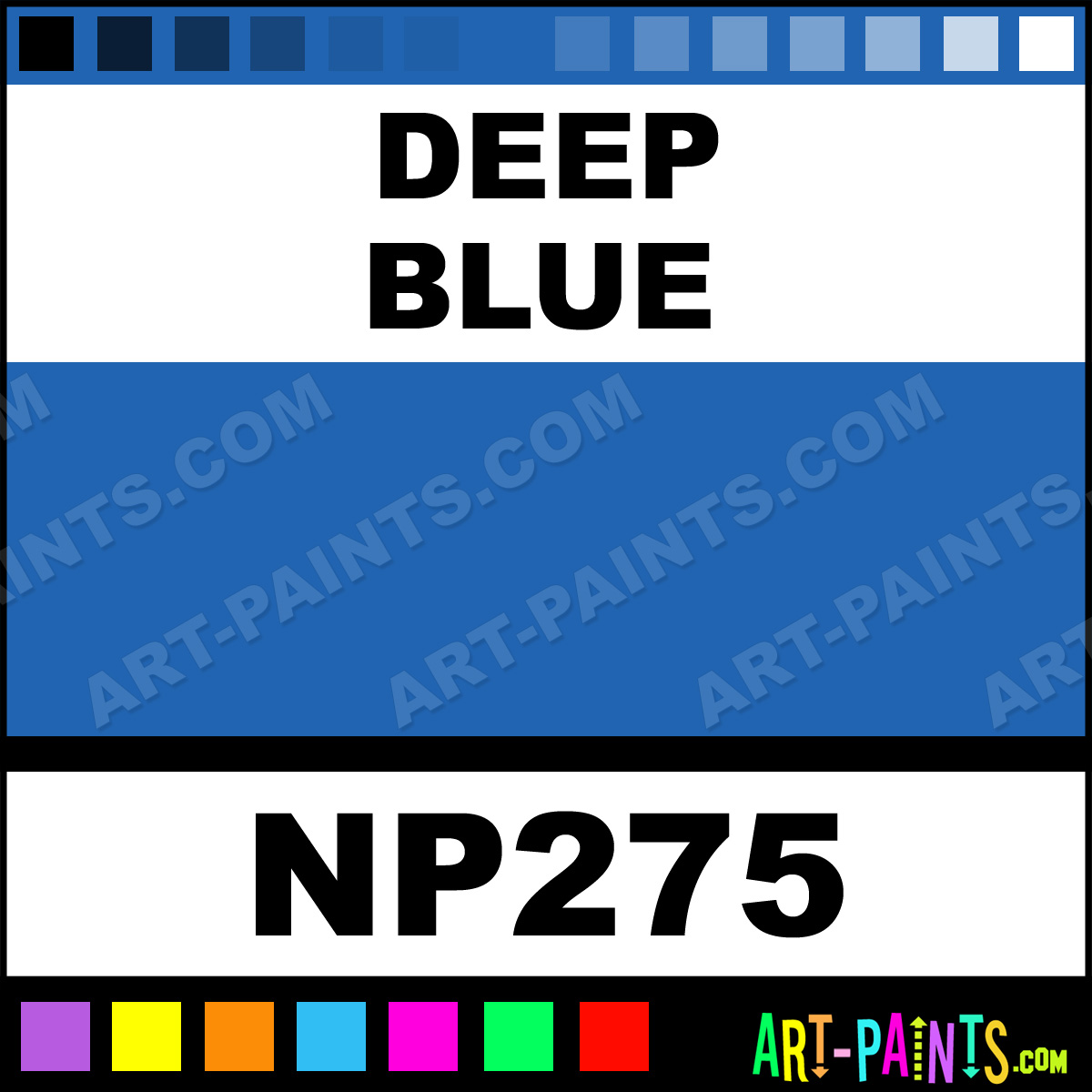 This beautiful Nupastel 48 Set Pastel shade is called Deep Blue, and comes from a company called Prismacolor. Their product number, along with the HTML color code, RGB, and CMYK codes are listed below. This Beautiful Shade of Deep Blue and others can be found in the Prismacolor Nupastel 48 Set Art Paint Gallery! Also be sure to browse through the other wonderful Professional Color Galleries to see more of Prismacolor Nupastel 48 Set Pastel Brand Paints and other Paint Manufacturers. And as always, Paint Paint Paint! -Art-Paints.com