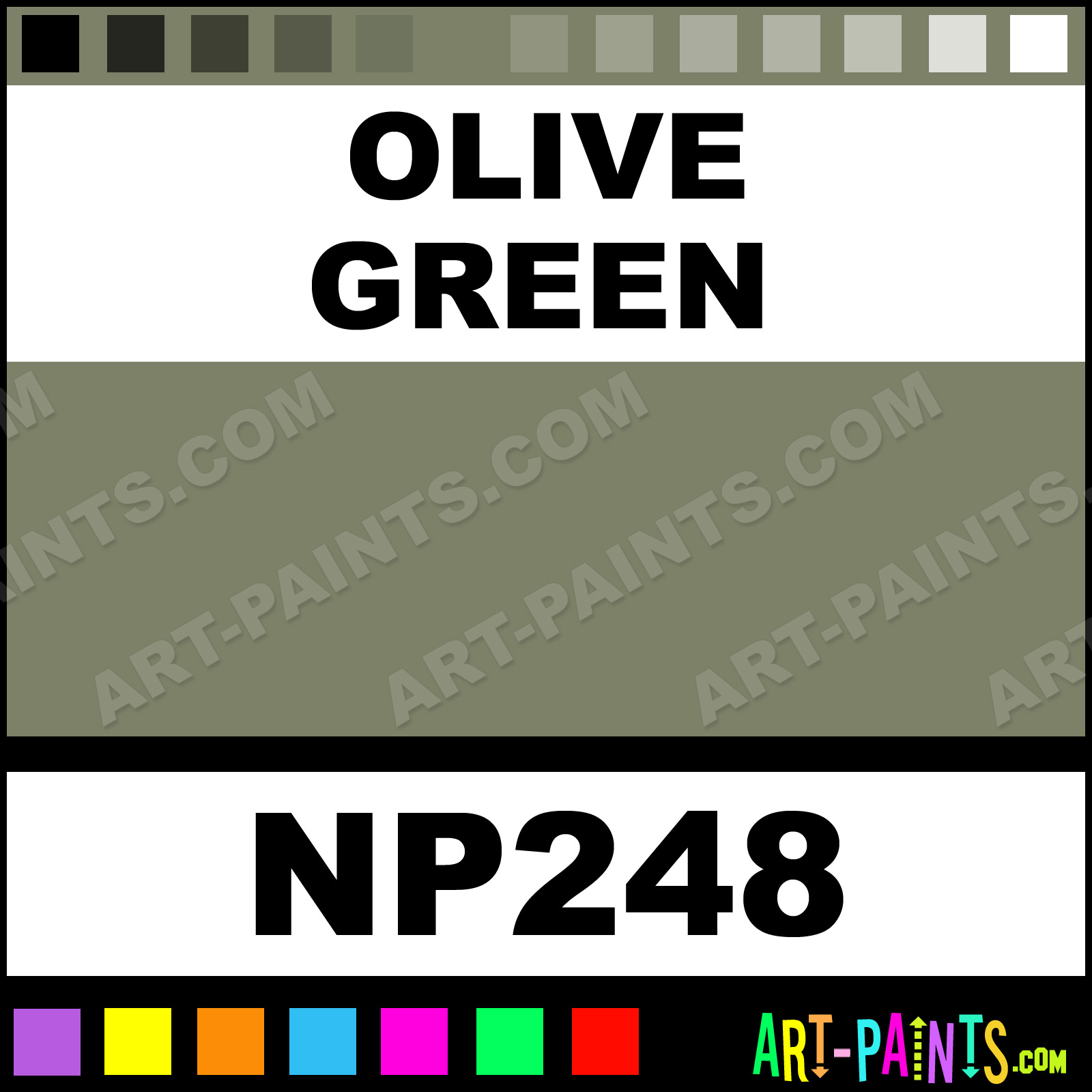 This beautiful Nupastel 60 Set Pastel shade is called Olive Green, and comes from a company called Prismacolor. Their product number, along with the HTML color code, RGB, and CMYK codes are listed below. This Beautiful Shade of Olive Green and others can be found in the Prismacolor Nupastel 60 Set Art Paint Gallery! Also be sure to browse through the other wonderful Professional Color Galleries to see more of Prismacolor Nupastel 60 Set Pastel Brand Paints and other Paint Manufacturers. And as always, Paint Paint Paint! -Art-Paints.com