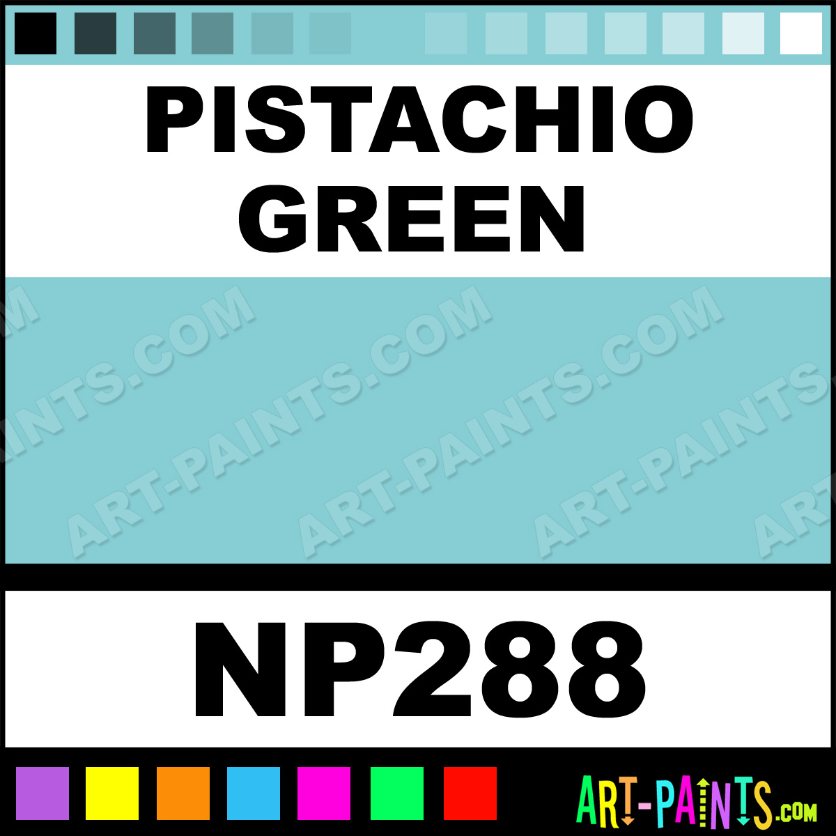 This beautiful Nupastel 60 Set Pastel shade is called Pistachio Green, and comes from a company called Prismacolor. Their product number, along with the HTML color code, RGB, and CMYK codes are listed below. This Beautiful Shade of Pistachio Green and others can be found in the Prismacolor Nupastel 60 Set Art Paint Gallery! Also be sure to browse through the other wonderful Professional Color Galleries to see more of Prismacolor Nupastel 60 Set Pastel Brand Paints and other Paint Manufacturers. And as always, Paint Paint Paint! -Art-Paints.com