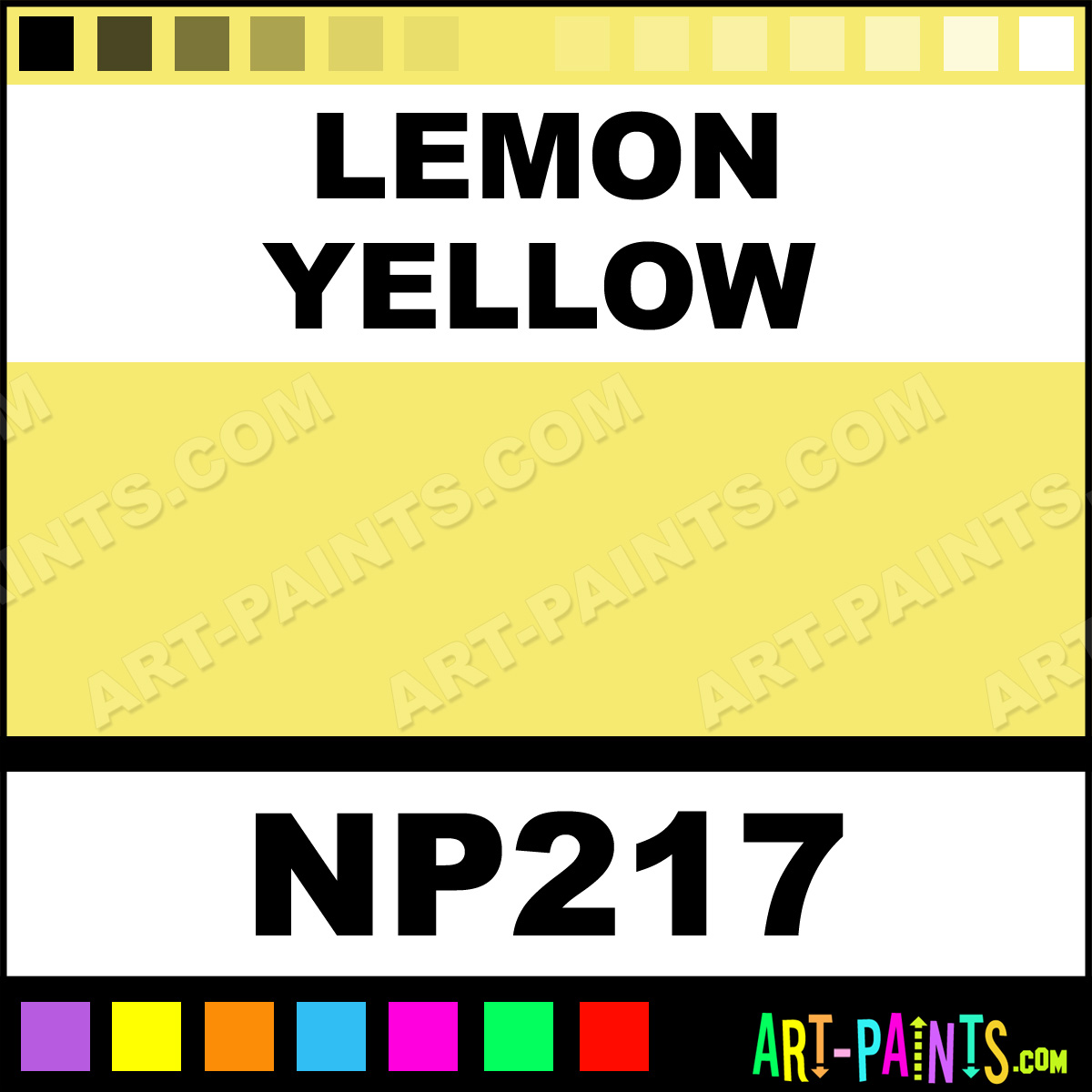 This beautiful Nupastel 72 Set Pastel shade is called Lemon Yellow, and comes from a company called Prismacolor. Their product number, along with the HTML color code, RGB, and CMYK codes are listed below. This Beautiful Shade of Lemon Yellow and others can be found in the Prismacolor Nupastel 72 Set Art Paint Gallery! Also be sure to browse through the other wonderful Professional Color Galleries to see more of Prismacolor Nupastel 72 Set Pastel Brand Paints and other Paint Manufacturers. And as always, Paint Paint Paint! -Art-Paints.com