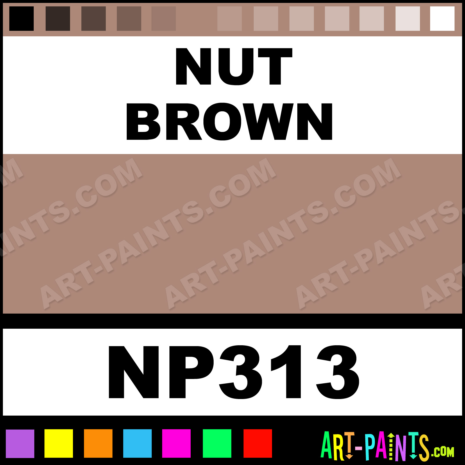 This beautiful Nupastel 96 Set Pastel shade is called Nut Brown, and comes from a company called Prismacolor. Their product number, along with the HTML color code, RGB, and CMYK codes are listed below. This Beautiful Shade of Nut Brown and others can be found in the Prismacolor Nupastel 96 Set Art Paint Gallery! Also be sure to browse through the other wonderful Professional Color Galleries to see more of Prismacolor Nupastel 96 Set Pastel Brand Paints and other Paint Manufacturers. And as always, Paint Paint Paint! -Art-Paints.com