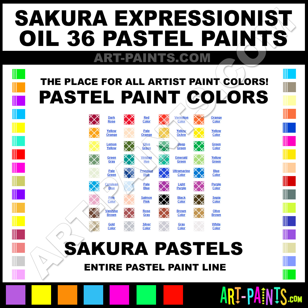 Sakura makes a beautiful Expressionist Oil 36 Paint Brand. With a complete line of Pastel Color Paints, 36 colors in all, available in beautiful hues and colors, they will no doubt keep you painting and smiling at the same time. This brand is very unique and exquisite!