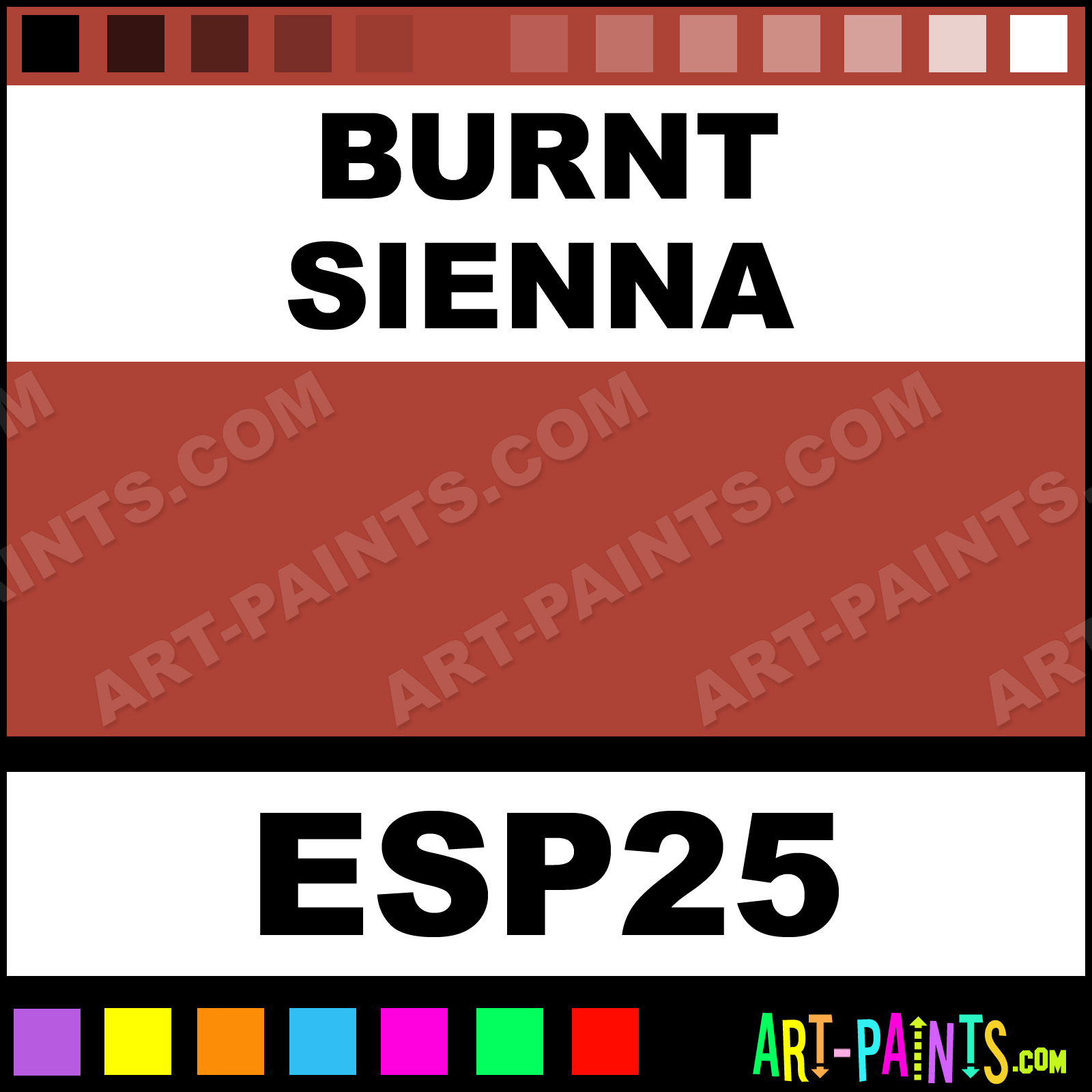 This beautiful Specialist Oil 25 Pastel shade is called Burnt Sienna, and comes from a company called Sakura. Their product number, along with the HTML color code, RGB, and CMYK codes are listed below. This Beautiful Shade of Burnt Sienna and others can be found in the Sakura Specialist Oil 25 Art Paint Gallery! Also be sure to browse through the other wonderful Professional Color Galleries to see more of Sakura Specialist Oil 25 Pastel Brand Paints and other Paint Manufacturers. And as always, Paint Paint Paint! -Art-Paints.com