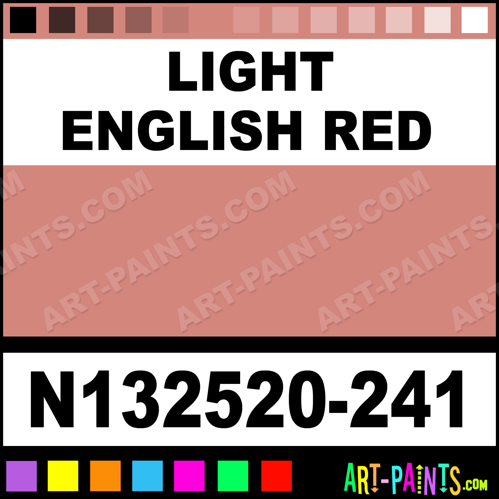 This beautiful Oil Landscape 24 Pastel shade is called Light English Red, and comes from a company called Sennelier. Their product number, along with the HTML color code, RGB, and CMYK codes are listed below. This Beautiful Shade of Light English Red and others can be found in the Sennelier Oil Landscape 24 Art Paint Gallery! Also be sure to browse through the other wonderful Professional Color Galleries to see more of Sennelier Oil Landscape 24 Pastel Brand Paints and other Paint Manufacturers. And as always, Paint Paint Paint! -Art-Paints.com
