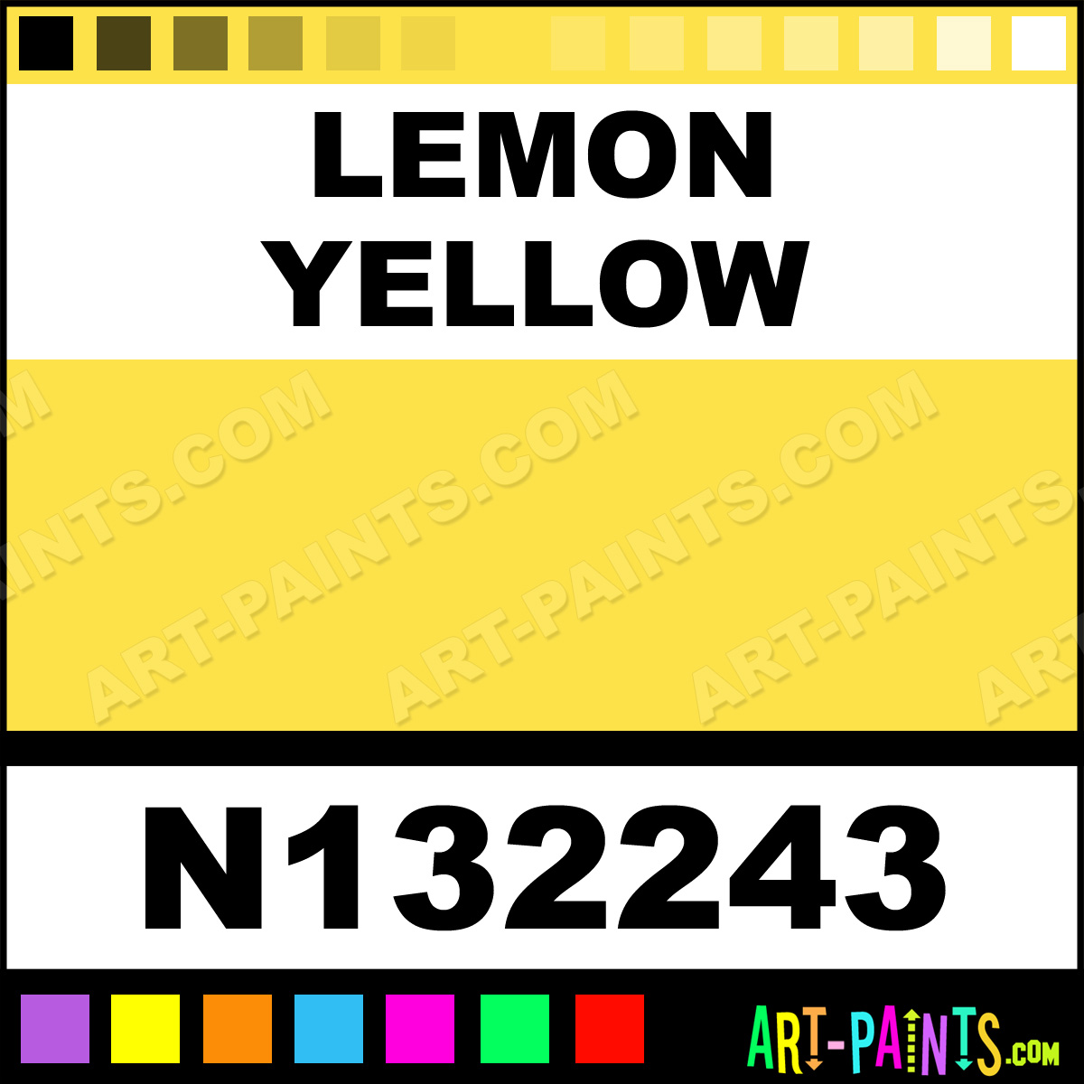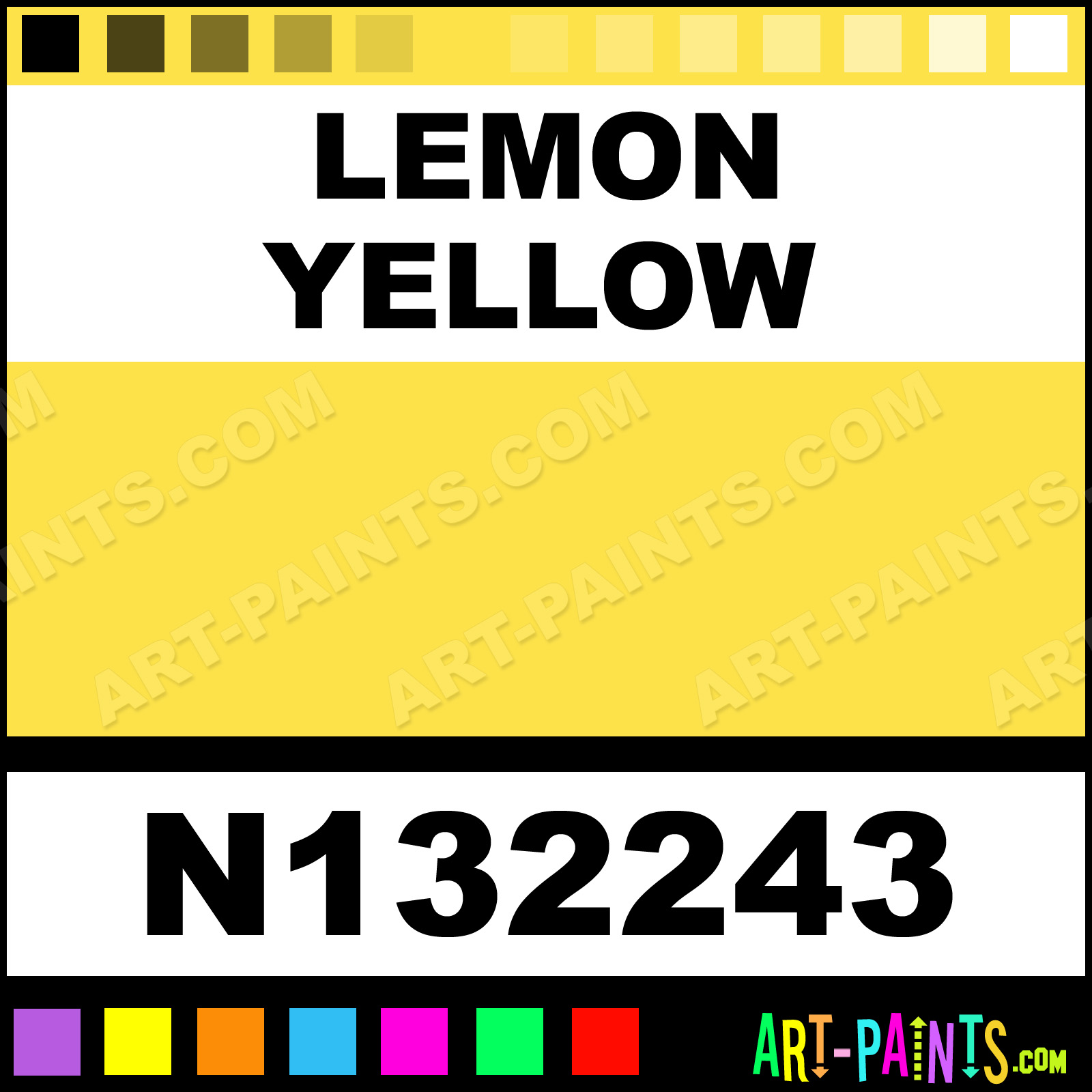 This beautiful Soft Iridescent 24 Pastel shade is called Lemon Yellow, and comes from a company called Sennelier. Their product number, along with the HTML color code, RGB, and CMYK codes are listed below. This Beautiful Shade of Lemon Yellow and others can be found in the Sennelier Soft Iridescent 24 Art Paint Gallery! Also be sure to browse through the other wonderful Professional Color Galleries to see more of Sennelier Soft Iridescent 24 Pastel Brand Paints and other Paint Manufacturers. And as always, Paint Paint Paint! -Art-Paints.com