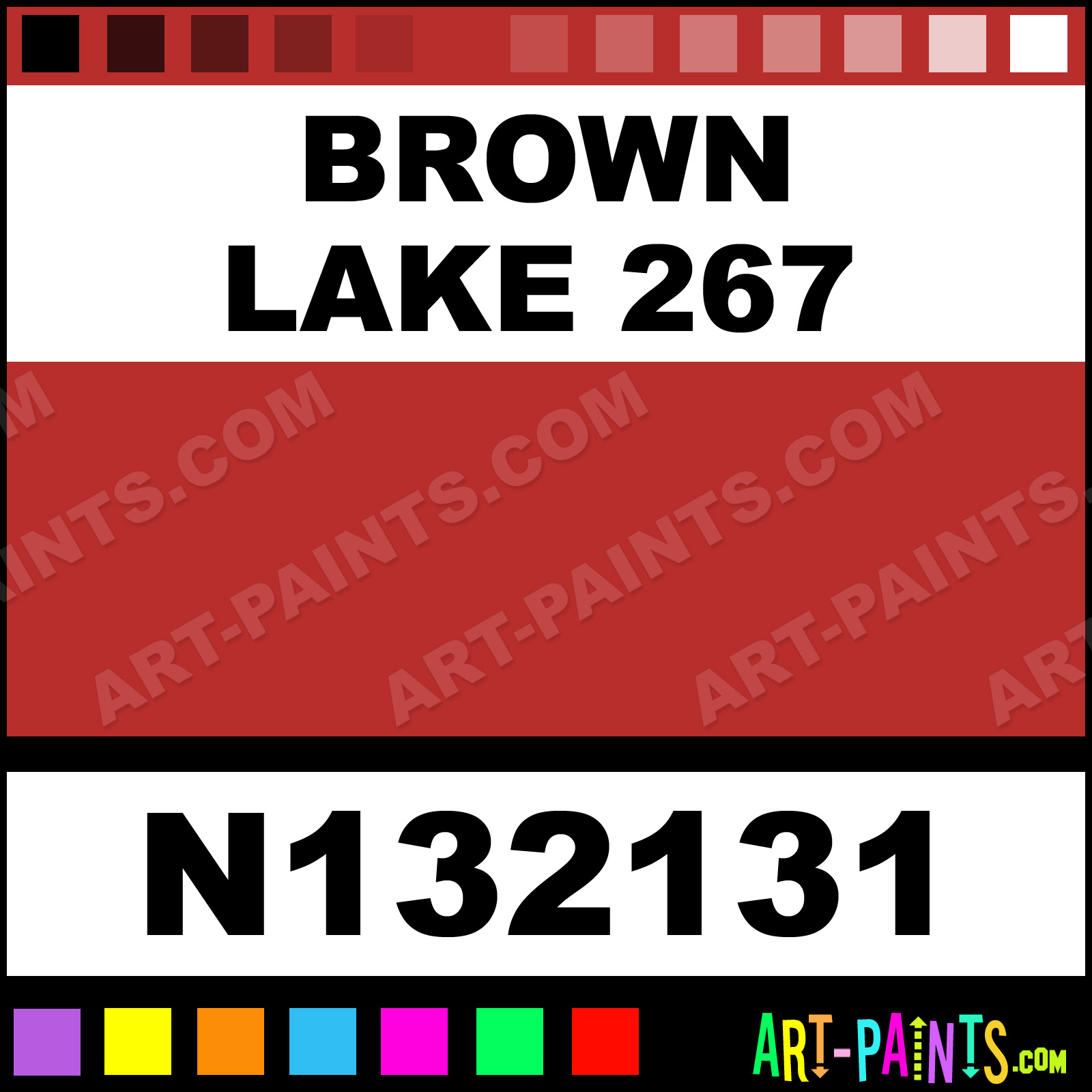 This beautiful Soft Landscape 100 Pastel shade is called Brown Lake 267, and comes from a company called Sennelier. Their product number, along with the HTML color code, RGB, and CMYK codes are listed below. This Beautiful Shade of Brown Lake 267 and others can be found in the Sennelier Soft Landscape 100 Art Paint Gallery! Also be sure to browse through the other wonderful Professional Color Galleries to see more of Sennelier Soft Landscape 100 Pastel Brand Paints and other Paint Manufacturers. And as always, Paint Paint Paint! -Art-Paints.com