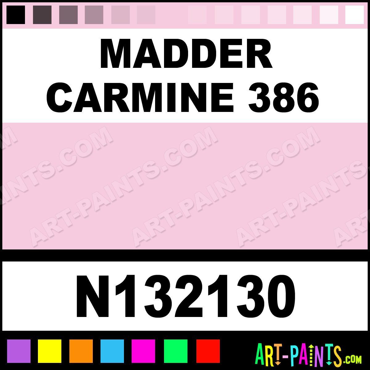 Madder Violet 313 Magenta Violet 946 Ruby Red 676 Venetian Red 095 Scarlet Lake 307 Vermilion 086 Madder Carmine 384