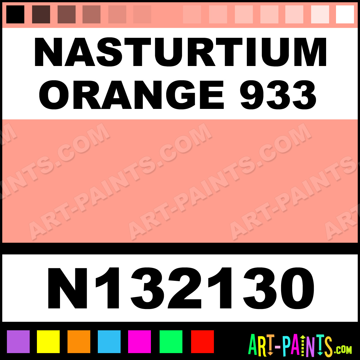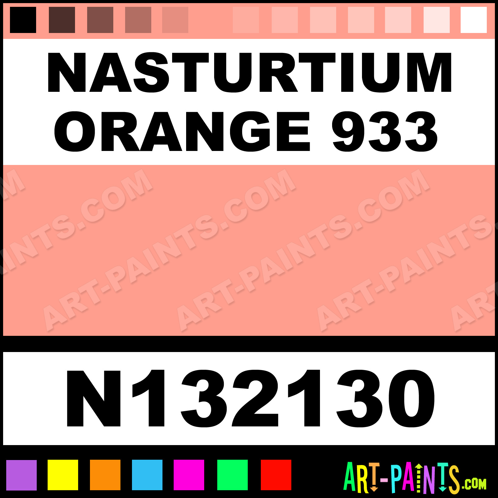 This beautiful Soft Portrait Pastel shade is called Nasturtium Orange 933, and comes from a company called Sennelier. Their product number, along with the HTML color code, RGB, and CMYK codes are listed below. This Beautiful Shade of Nasturtium Orange 933 and others can be found in the Sennelier Soft Portrait Art Paint Gallery! Also be sure to browse through the other wonderful Professional Color Galleries to see more of Sennelier Soft Portrait Pastel Brand Paints and other Paint Manufacturers. And as always, Paint Paint Paint! -Art-Paints.com
