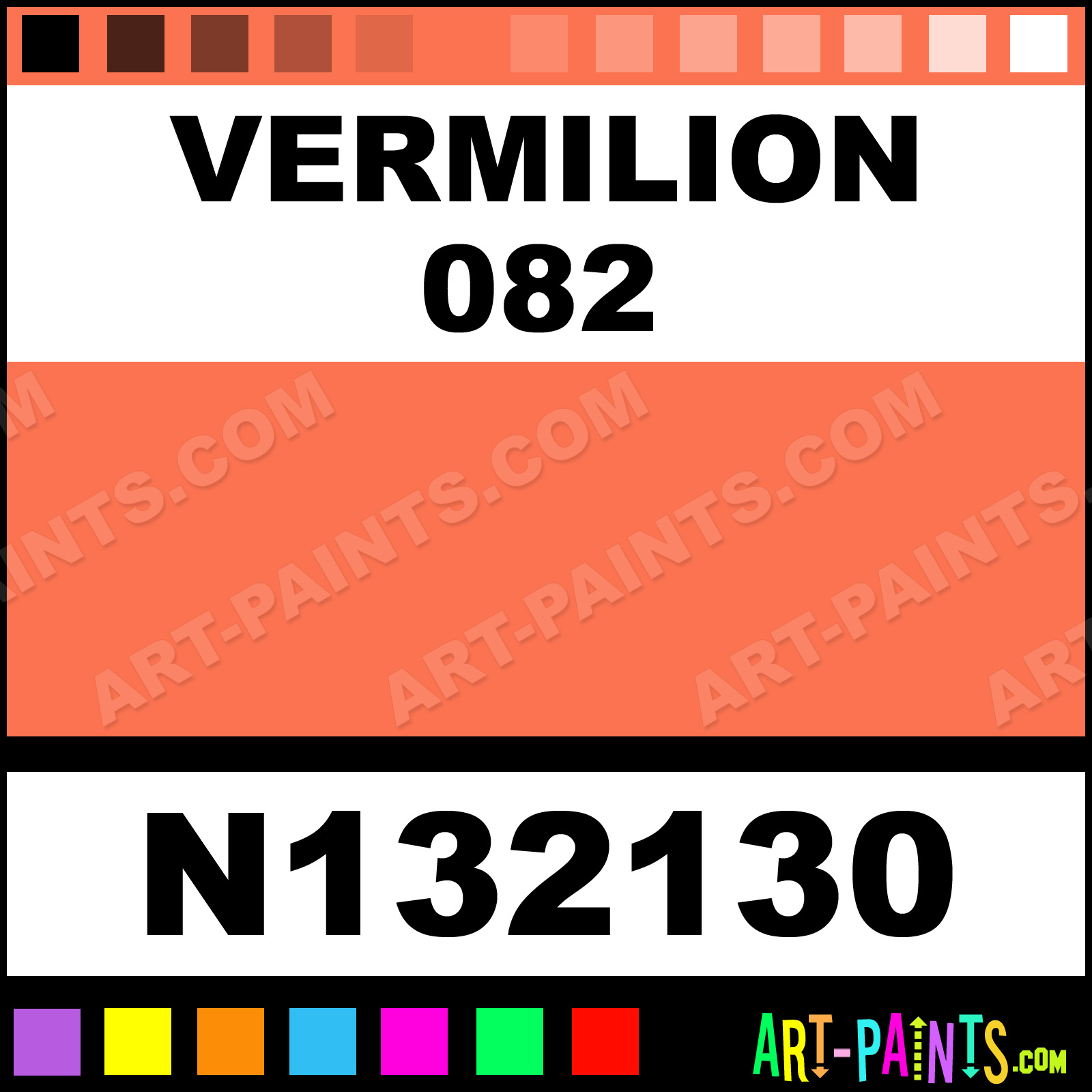 Scarlet Lake 303 Ruby Red 672 Ruby Red 670 Orange Lead 038 Vermilion 084 Nasturtium Orange 933 Nasturtium Orange 934