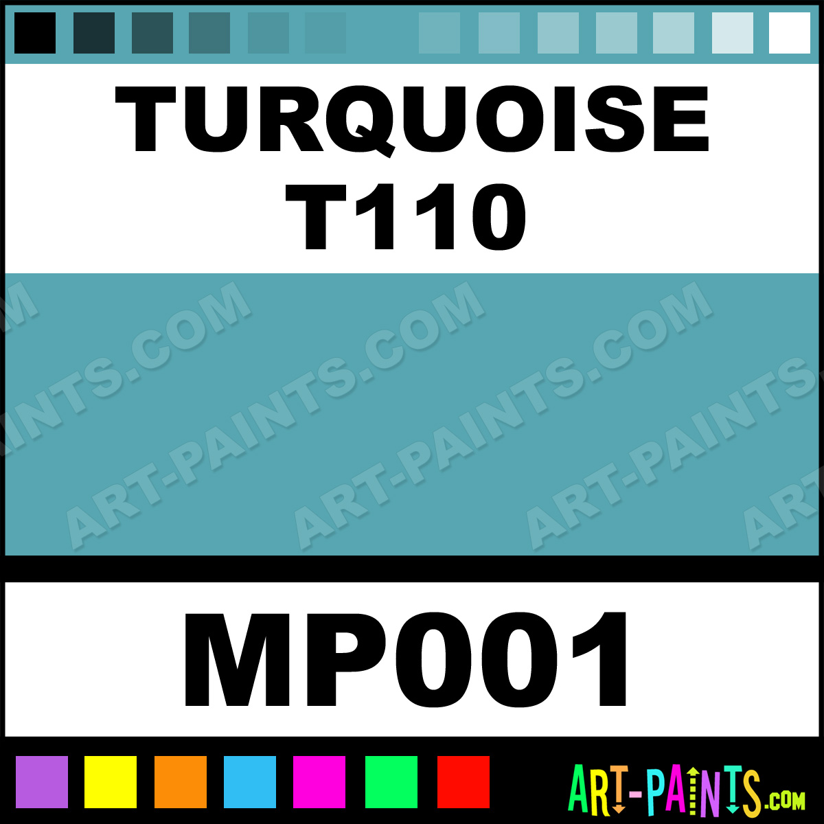 This beautiful Maggie Basic Values Pastel shade is called Turquoise T110, and comes from a company called Terry Ludwig. Their product number, along with the HTML color code, RGB, and CMYK codes are listed below. This Beautiful Shade of Turquoise T110 and others can be found in the Terry Ludwig Maggie Basic Values Art Paint Gallery! Also be sure to browse through the other wonderful Professional Color Galleries to see more of Terry Ludwig Maggie Basic Values Pastel Brand Paints and other Paint Manufacturers. And as always, Paint Paint Paint! -Art-Paints.com