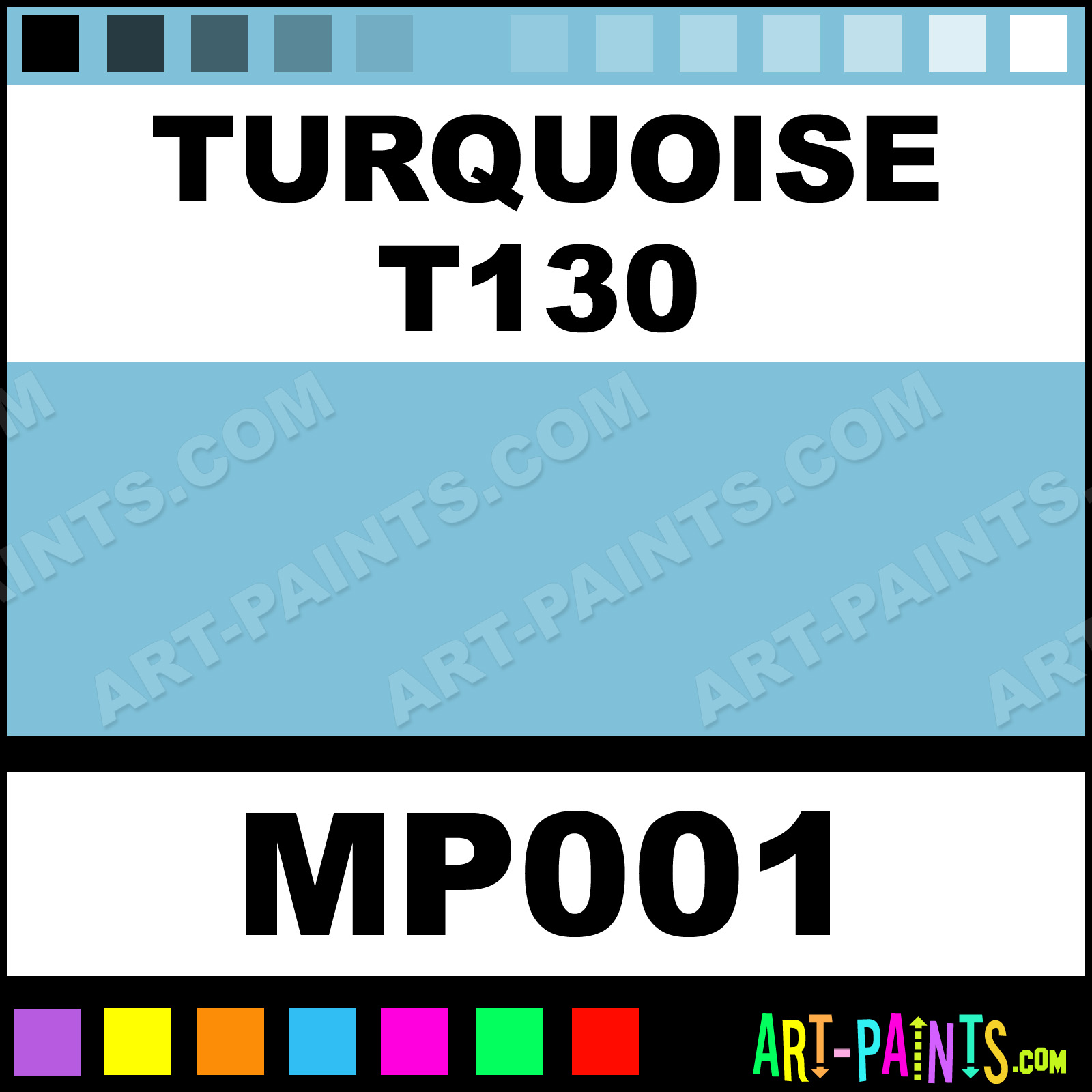 This beautiful Maggie Basic Values Pastel shade is called Turquoise T130, and comes from a company called Terry Ludwig. Their product number, along with the HTML color code, RGB, and CMYK codes are listed below. This Beautiful Shade of Turquoise T130 and others can be found in the Terry Ludwig Maggie Basic Values Art Paint Gallery! Also be sure to browse through the other wonderful Professional Color Galleries to see more of Terry Ludwig Maggie Basic Values Pastel Brand Paints and other Paint Manufacturers. And as always, Paint Paint Paint! -Art-Paints.com