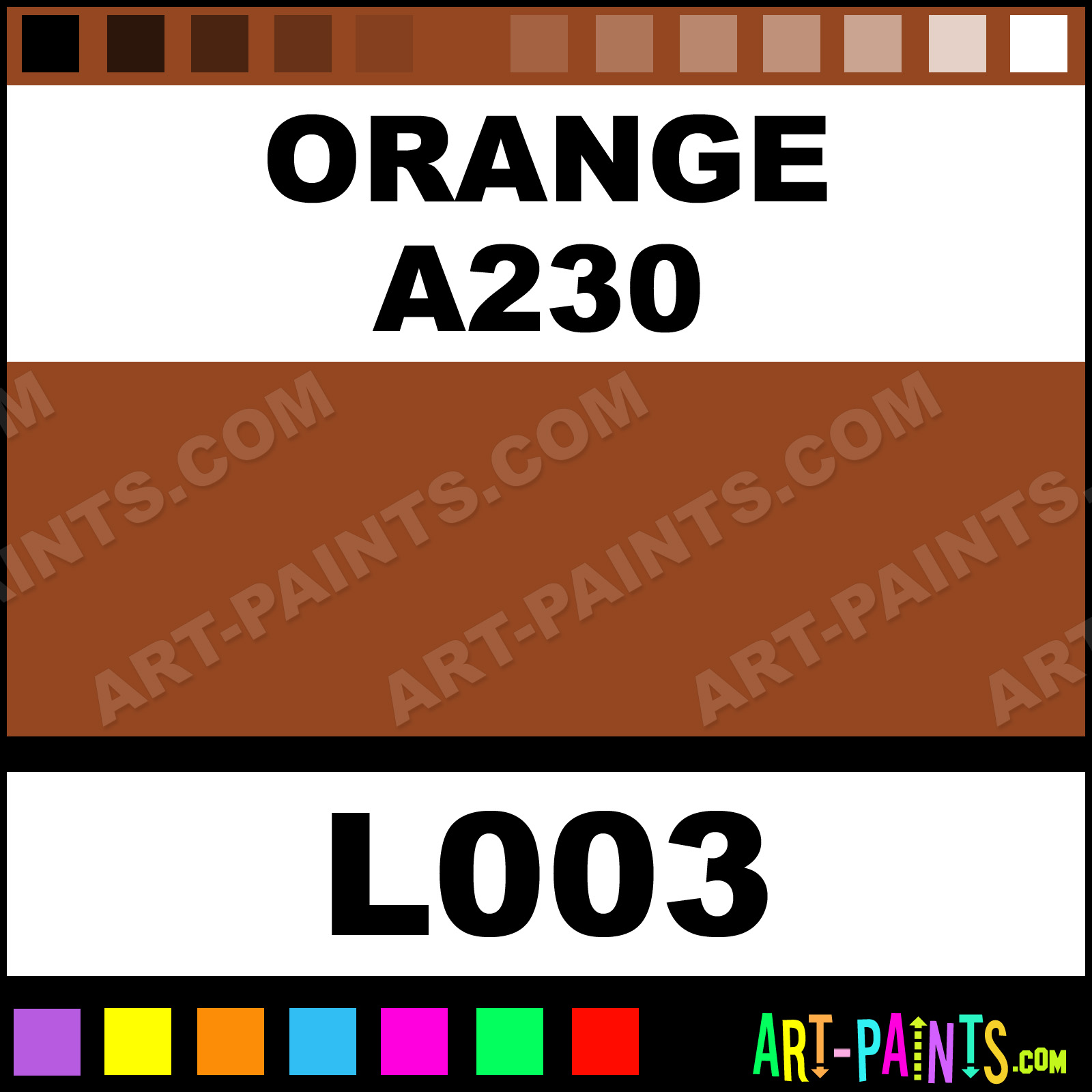 This beautiful Plein Air Landscape Pastel shade is called Orange A230, and comes from a company called Terry Ludwig. Their product number, along with the HTML color code, RGB, and CMYK codes are listed below. This Beautiful Shade of Orange A230 and others can be found in the Terry Ludwig Plein Air Landscape Art Paint Gallery! Also be sure to browse through the other wonderful Professional Color Galleries to see more of Terry Ludwig Plein Air Landscape Pastel Brand Paints and other Paint Manufacturers. And as always, Paint Paint Paint! -Art-Paints.com