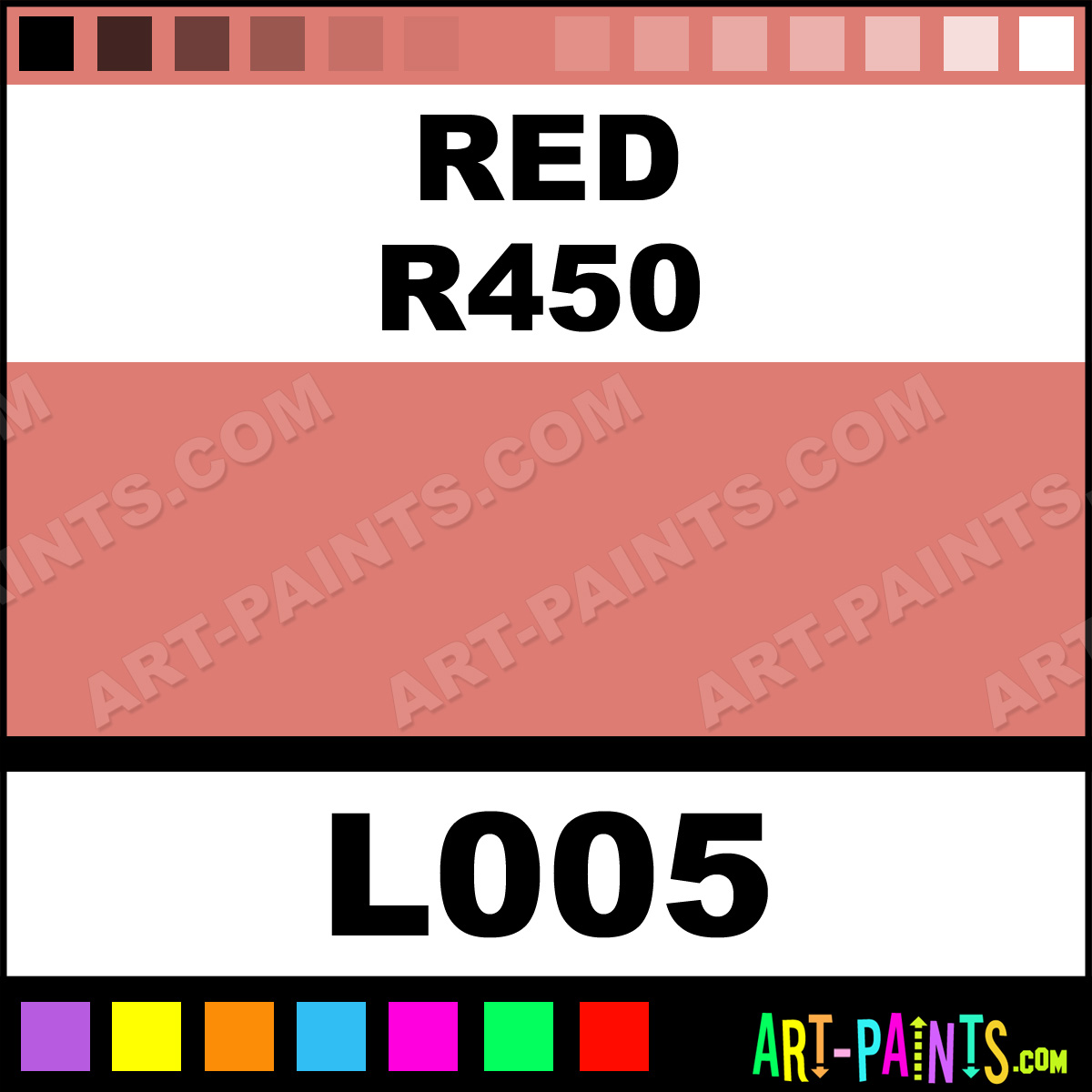 This beautiful Southeast Landscape Pastel shade is called Red R450, and comes from a company called Terry Ludwig. Their product number, along with the HTML color code, RGB, and CMYK codes are listed below. This Beautiful Shade of Red R450 and others can be found in the Terry Ludwig Southeast Landscape Art Paint Gallery! Also be sure to browse through the other wonderful Professional Color Galleries to see more of Terry Ludwig Southeast Landscape Pastel Brand Paints and other Paint Manufacturers. And as always, Paint Paint Paint! -Art-Paints.com