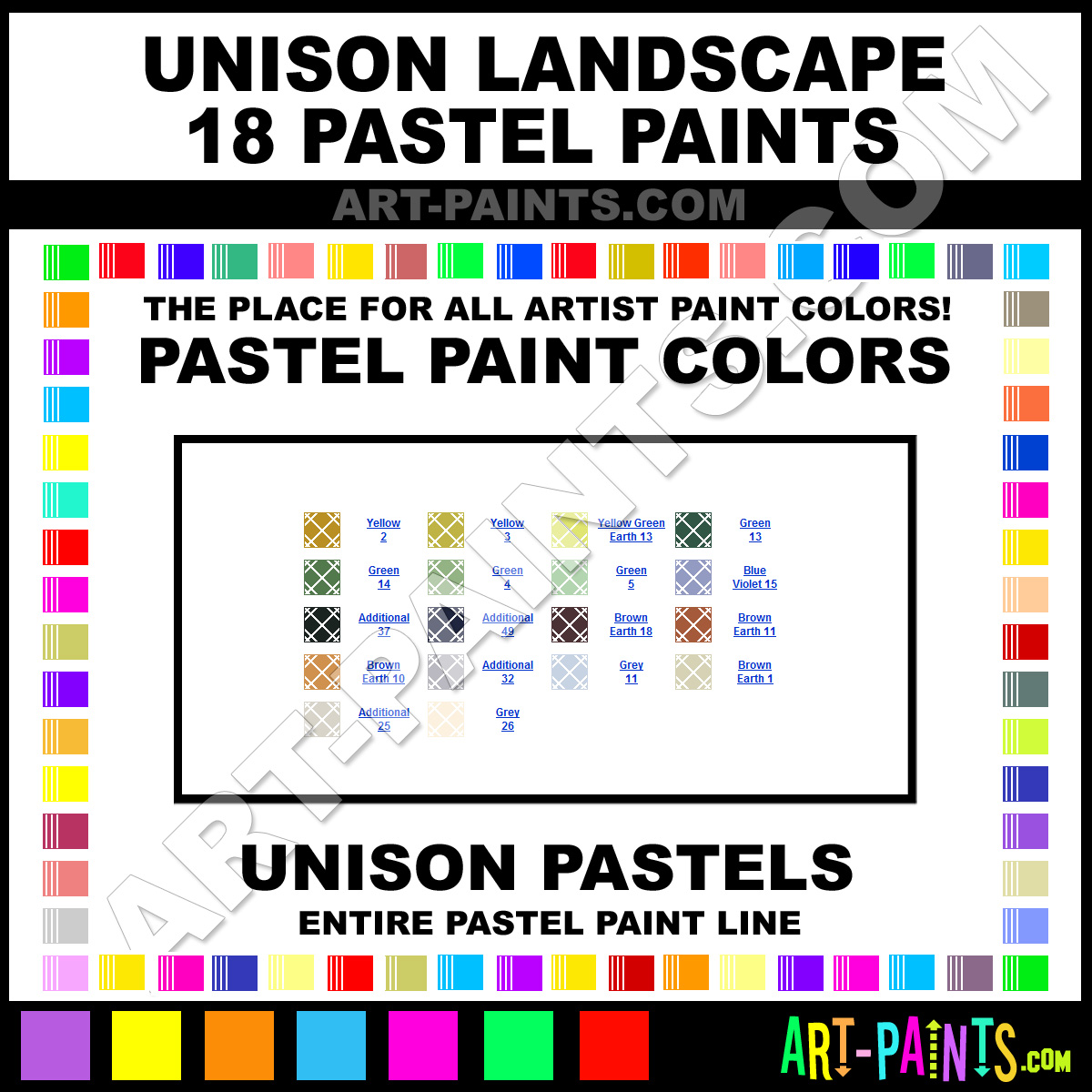 Unison knows Pastel paints! They make a wonderful brand of paint called Unison Landscape 18 Pastel Colors that suits all types of artists. They strive to perfect the process of color and are one of the most popular Pastel Paint Brand companies in the world. Enjoy their entire paint brand collection from the list below. Unison makes wonderful Artists Paints that everyone is sure to enjoy! Choose an Pastel Paint Color below to view that Hue and all their great related color paints.   -Art-Paints.com