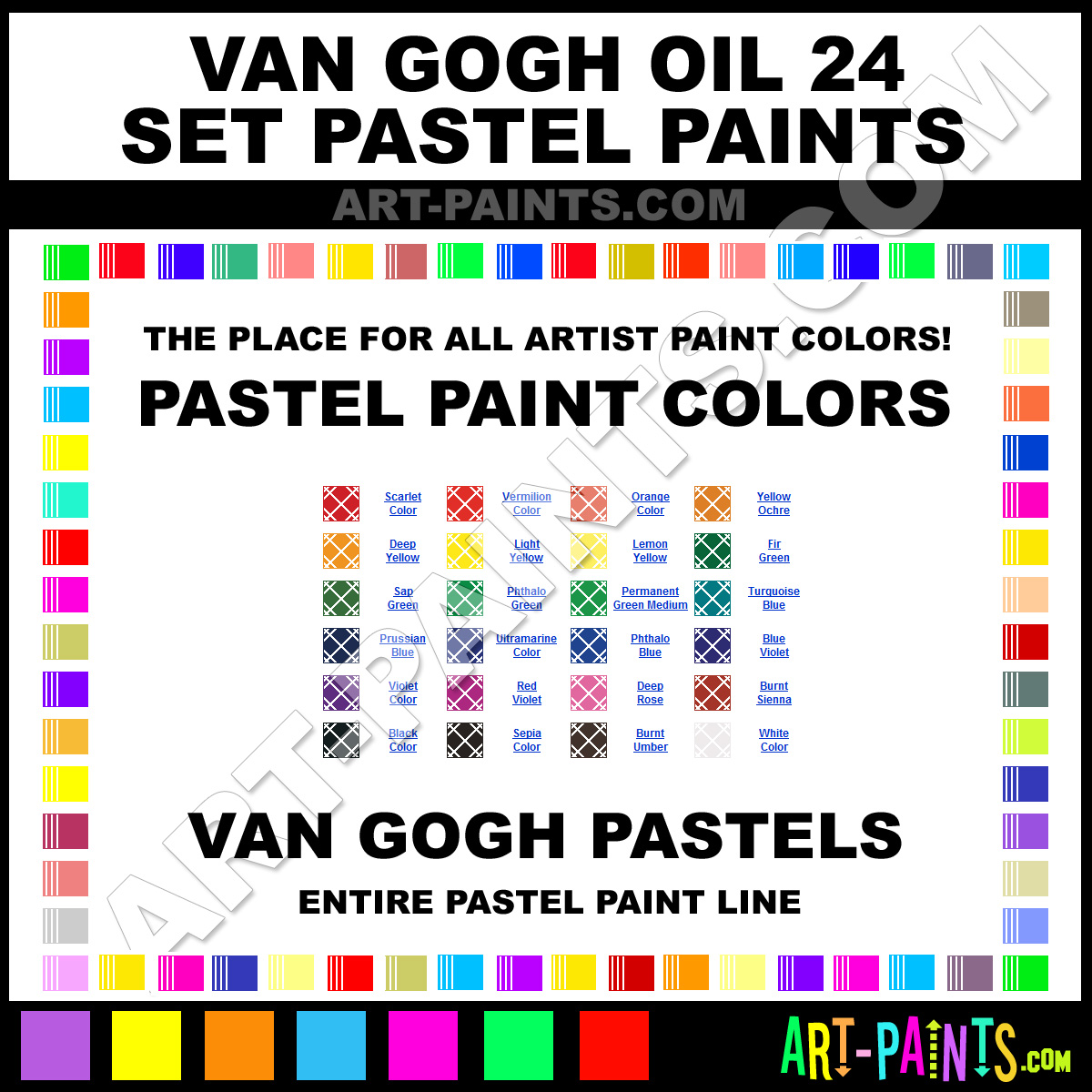 Van Gogh makes a beautiful Oil 24 Set Paint Brand. With a complete line of Pastel Color Paints, 24 colors in all, available in beautiful hues and colors, they will no doubt keep you painting and smiling at the same time. This brand is very unique and exquisite!