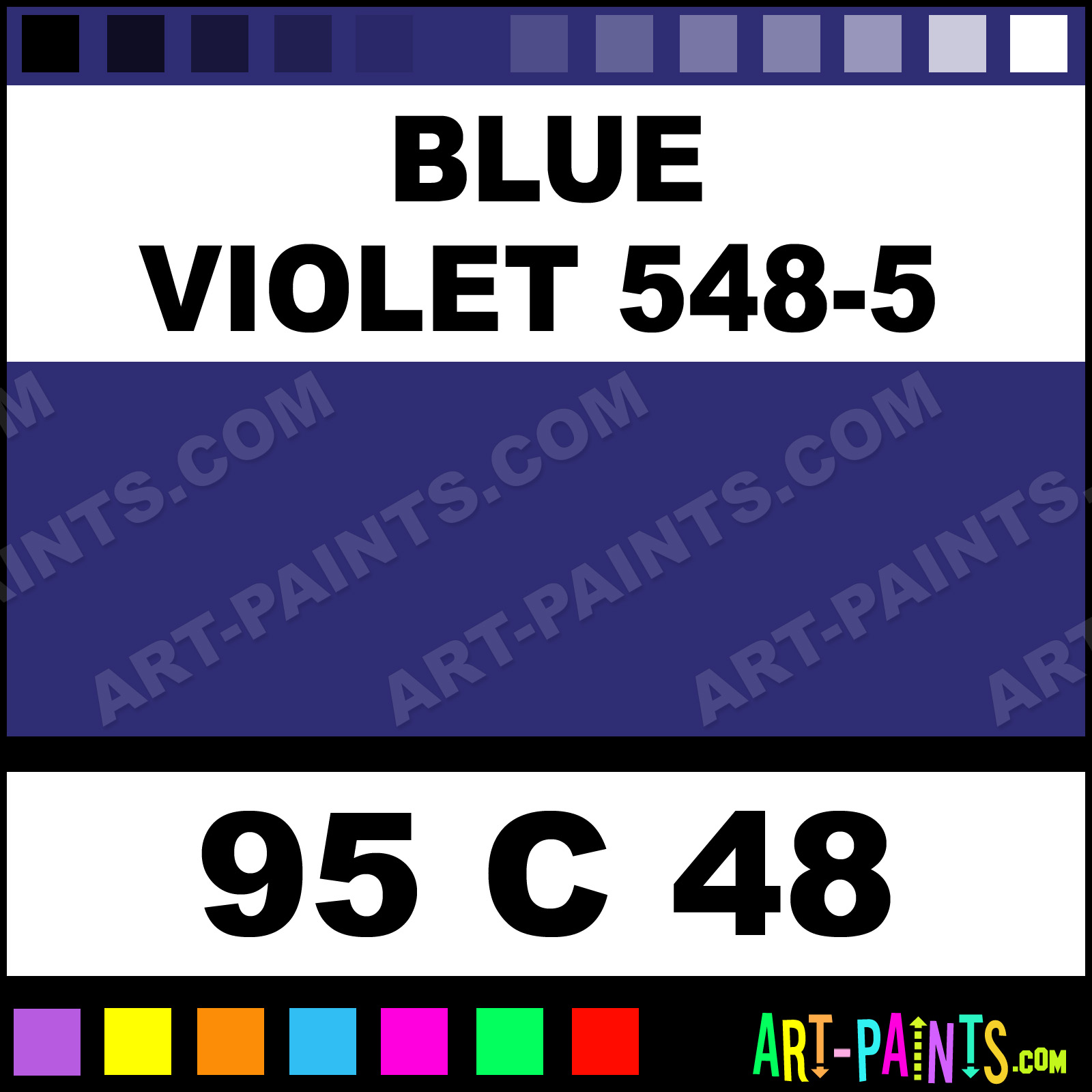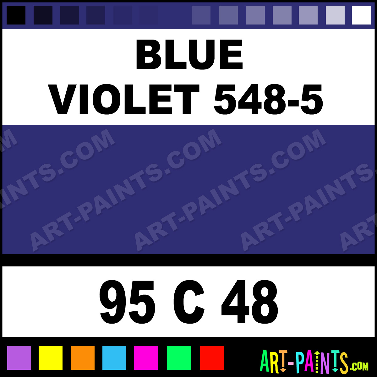 Phthalo Blue 570-5 Cerulean Blue 535-5 Ultramarine 504-9 Violet 536-5 Violet 536-7 Red Violet 545-7 Blue Violet 548-7