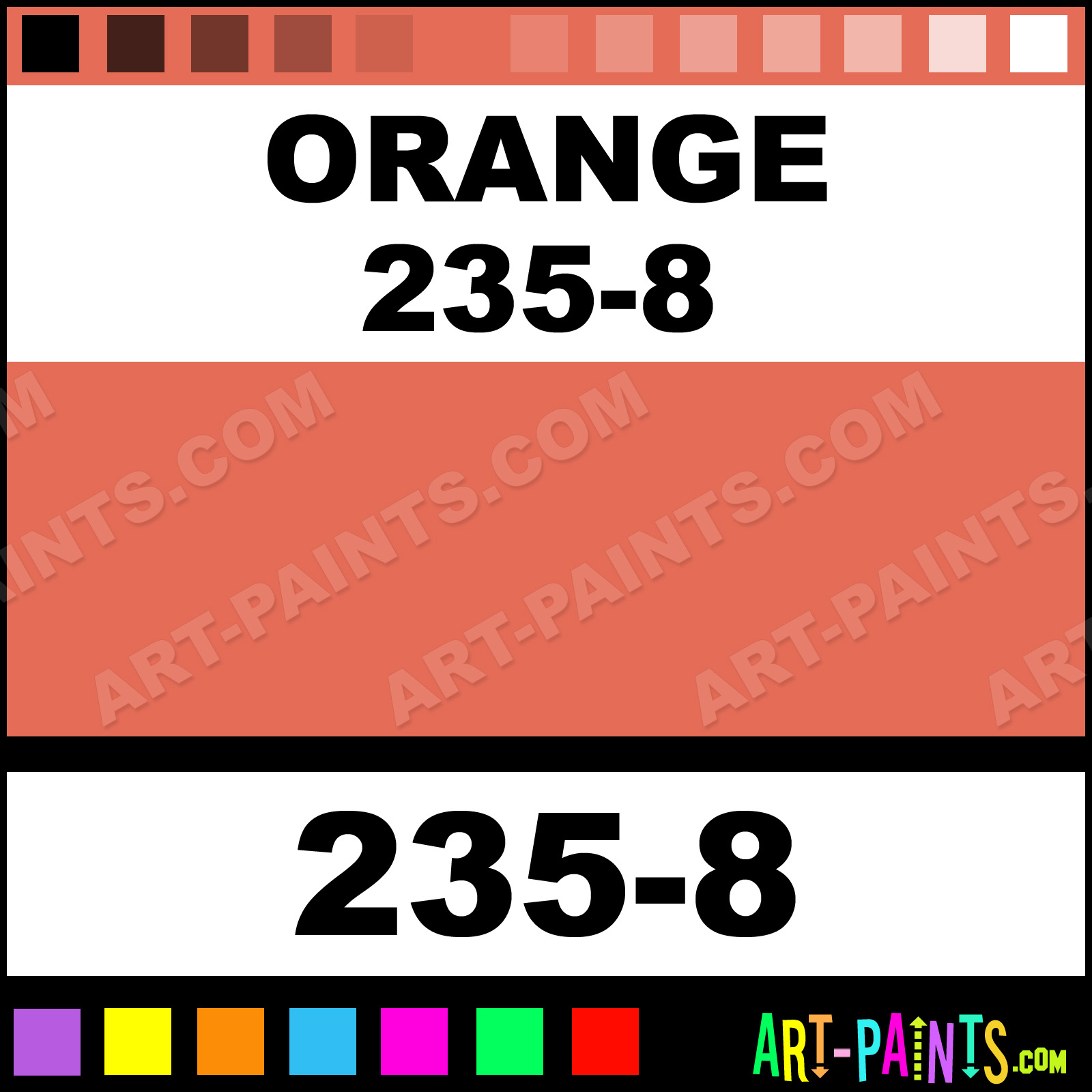This beautiful Oil Pastel shade is called Orange 235-8, and comes from a company called Van Gogh. Their product number, along with the HTML color code, RGB, and CMYK codes are listed below. This Beautiful Shade of Orange 235-8 and others can be found in the Van Gogh Oil Art Paint Gallery! Also be sure to browse through the other wonderful Professional Color Galleries to see more of Van Gogh Oil Pastel Brand Paints and other Paint Manufacturers. And as always, Paint Paint Paint! -Art-Paints.com
