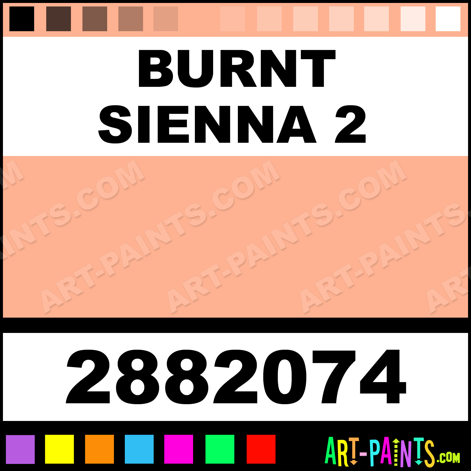 This beautiful Artists Pastel shade is called Burnt Sienna 2, and comes from a company called Winsor and Newton. Their product number, along with the HTML color code, RGB, and CMYK codes are listed below. This Beautiful Shade of Burnt Sienna 2 and others can be found in the Winsor and Newton Artists Art Paint Gallery! Also be sure to browse through the other wonderful Professional Color Galleries to see more of Winsor and Newton Artists Pastel Brand Paints and other Paint Manufacturers. And as always, Paint Paint Paint! -Art-Paints.com