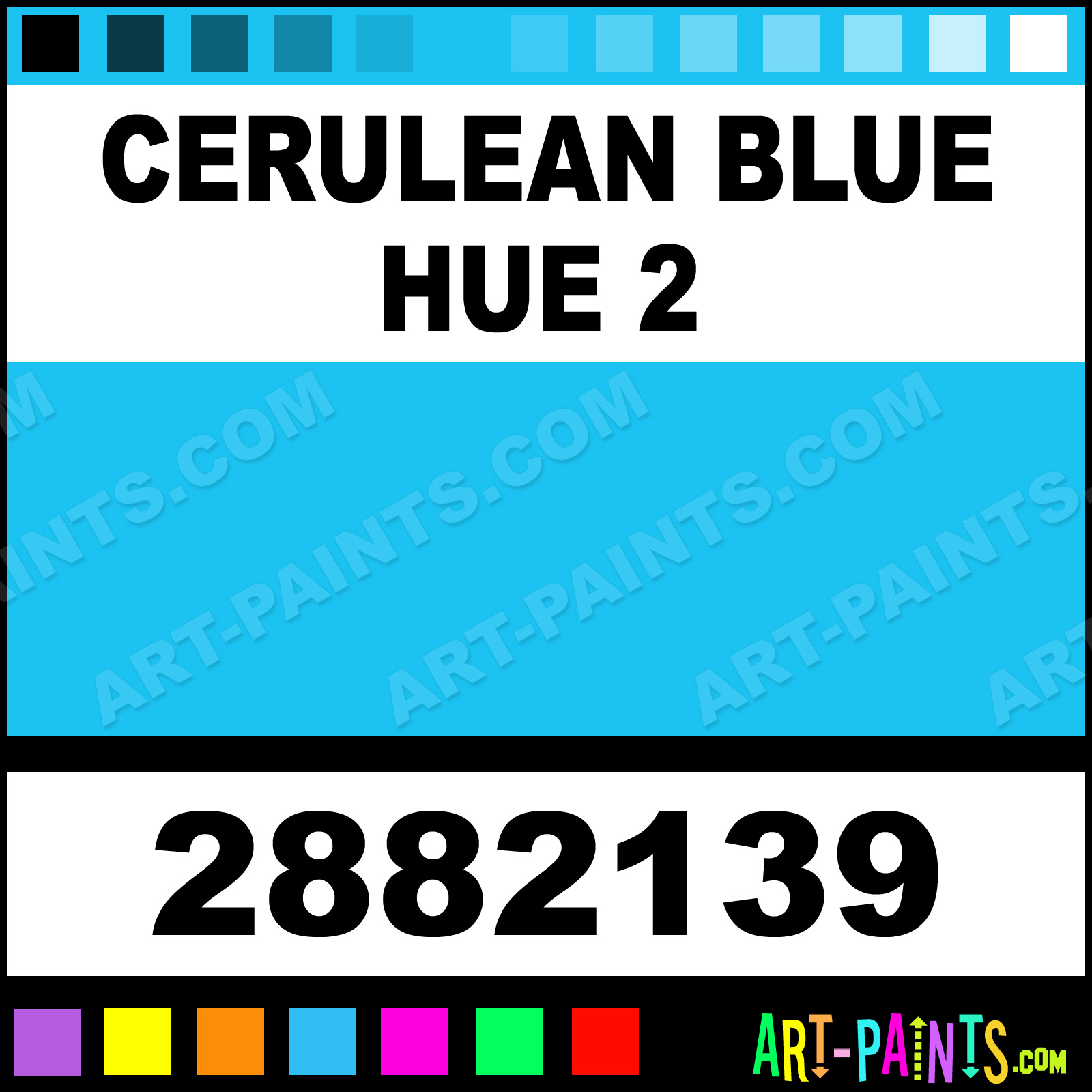 This beautiful Artists Pastel shade is called Cerulean Blue Hue 2, and comes from a company called Winsor and Newton. Their product number, along with the HTML color code, RGB, and CMYK codes are listed below. This Beautiful Shade of Cerulean Blue Hue 2 and others can be found in the Winsor and Newton Artists Art Paint Gallery! Also be sure to browse through the other wonderful Professional Color Galleries to see more of Winsor and Newton Artists Pastel Brand Paints and other Paint Manufacturers. And as always, Paint Paint Paint! -Art-Paints.com