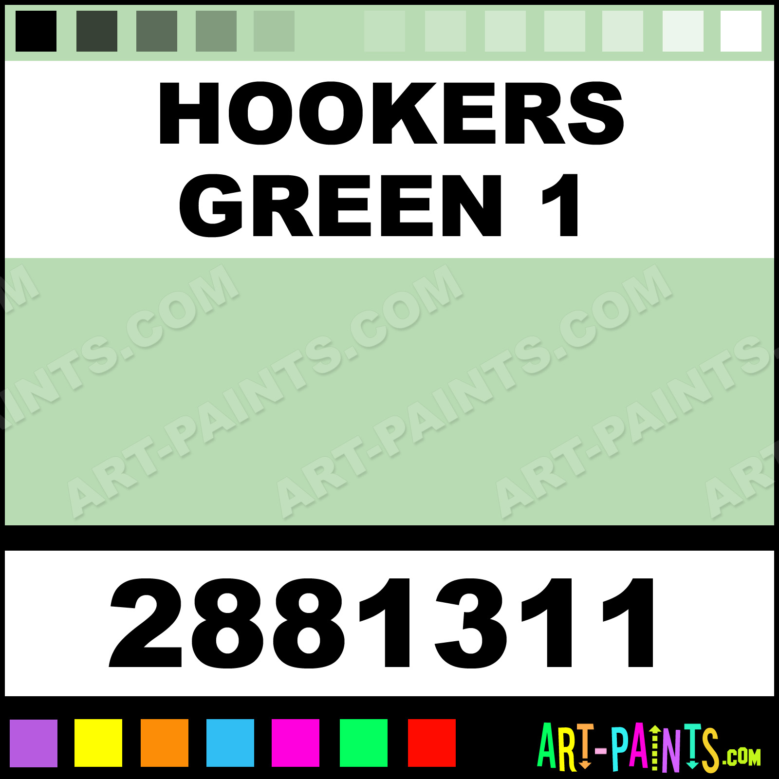 This beautiful Artists Pastel shade is called Hookers Green 1, and comes from a company called Winsor and Newton. Their product number, along with the HTML color code, RGB, and CMYK codes are listed below. This Beautiful Shade of Hookers Green 1 and others can be found in the Winsor and Newton Artists Art Paint Gallery! Also be sure to browse through the other wonderful Professional Color Galleries to see more of Winsor and Newton Artists Pastel Brand Paints and other Paint Manufacturers. And as always, Paint Paint Paint! -Art-Paints.com