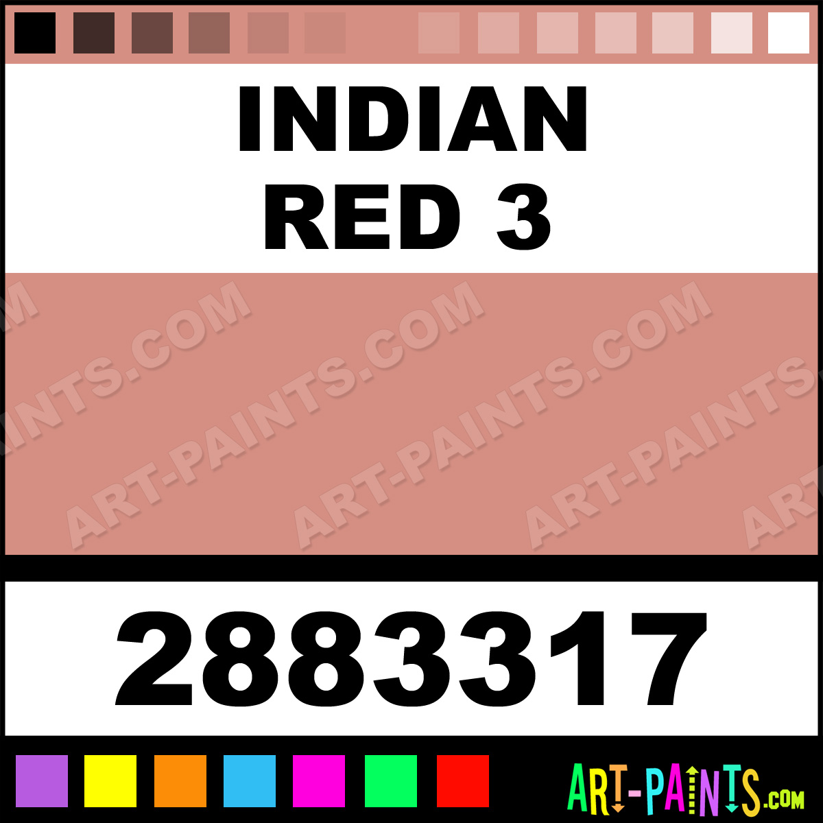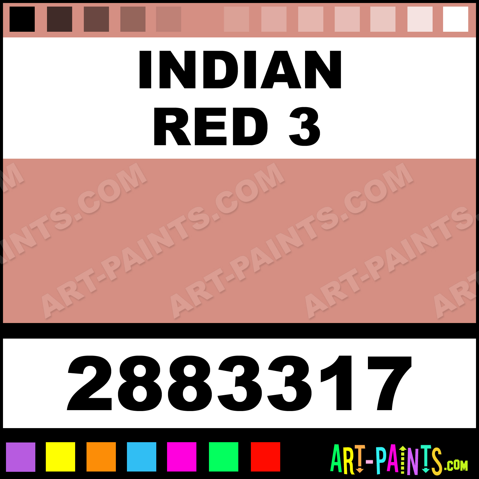 This beautiful Artists Pastel shade is called Indian Red 3, and comes from a company called Winsor and Newton. Their product number, along with the HTML color code, RGB, and CMYK codes are listed below. This Beautiful Shade of Indian Red 3 and others can be found in the Winsor and Newton Artists Art Paint Gallery! Also be sure to browse through the other wonderful Professional Color Galleries to see more of Winsor and Newton Artists Pastel Brand Paints and other Paint Manufacturers. And as always, Paint Paint Paint! -Art-Paints.com