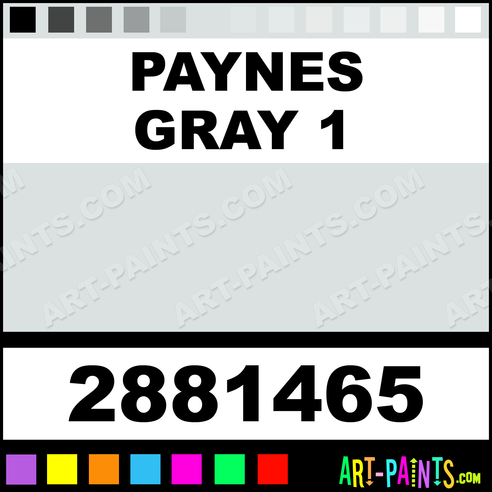 This beautiful Artists Pastel shade is called Paynes Gray 1, and comes from a company called Winsor and Newton. Their product number, along with the HTML color code, RGB, and CMYK codes are listed below. This Beautiful Shade of Paynes Gray 1 and others can be found in the Winsor and Newton Artists Art Paint Gallery! Also be sure to browse through the other wonderful Professional Color Galleries to see more of Winsor and Newton Artists Pastel Brand Paints and other Paint Manufacturers. And as always, Paint Paint Paint! -Art-Paints.com