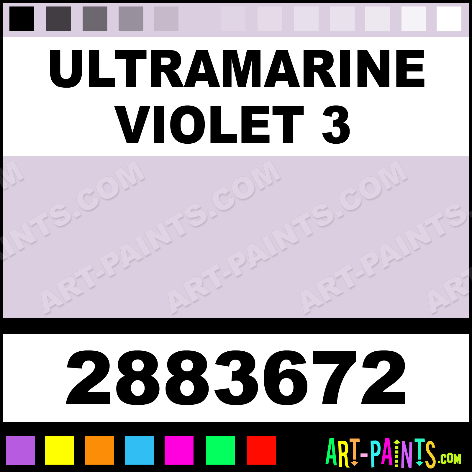 This beautiful Artists Pastel shade is called Ultramarine Violet 3, and comes from a company called Winsor and Newton. Their product number, along with the HTML color code, RGB, and CMYK codes are listed below. This Beautiful Shade of Ultramarine Violet 3 and others can be found in the Winsor and Newton Artists Art Paint Gallery! Also be sure to browse through the other wonderful Professional Color Galleries to see more of Winsor and Newton Artists Pastel Brand Paints and other Paint Manufacturers. And as always, Paint Paint Paint! -Art-Paints.com