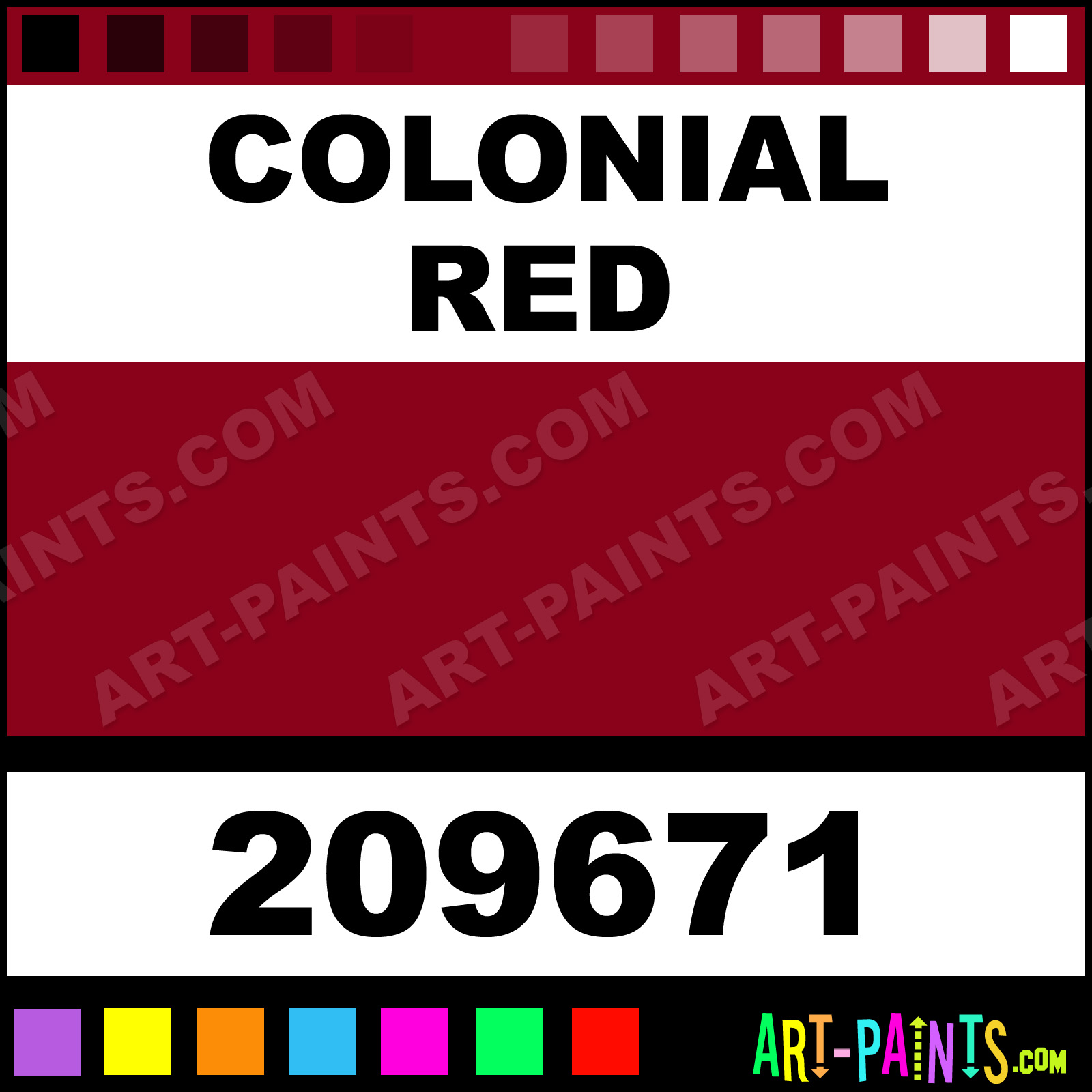 This beautiful Craft and Hobby Spray Paint shade is called Colonial Red, and comes from a Aerosol company called American Accents. Their product number, along with the HTML color code, RGB, and CMYK codes are listed below. This Beautiful Shade of Colonial Red and others can be found in the American Accents Craft and Hobby Art Paint Gallery! Also be sure to browse through the other wonderful Professional Color Galleries which are great for Decorative Art or Graffiti Art to see more of American Accents Craft and Hobby Spray Paints, Brands and other Aerosol Paint Manufacturers. And as always, Paint Paint Paint!   -Art-Paints.com