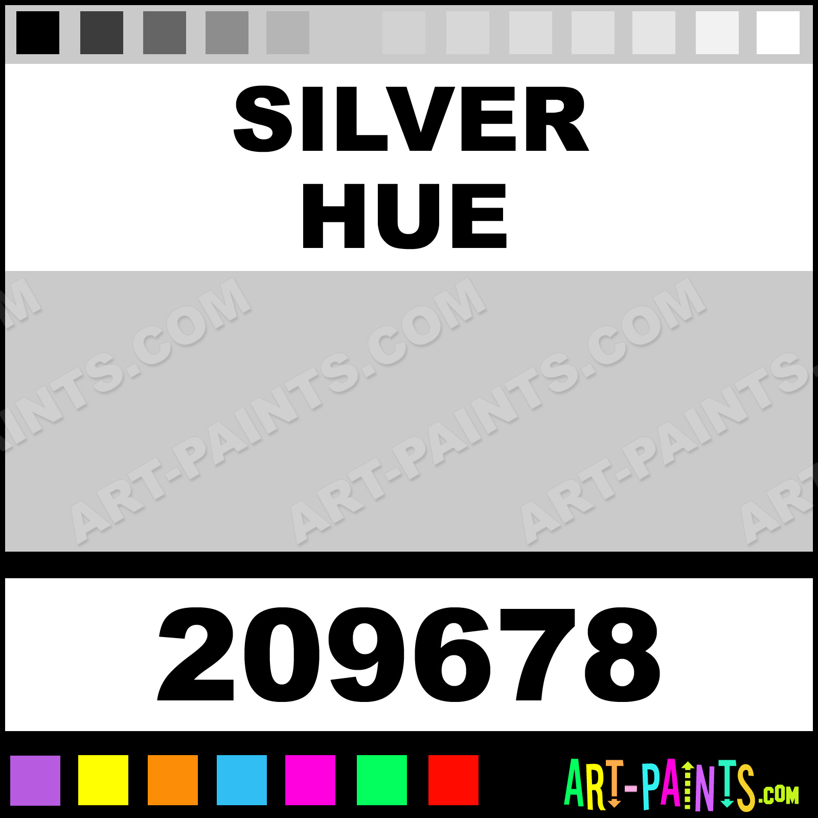 This beautiful Craft and Hobby Spray Paint shade is called Silver, and comes from a Aerosol company called American Accents. Their product number, along with the HTML color code, RGB, and CMYK codes are listed below. This Beautiful Shade of Silver and others can be found in the American Accents Craft and Hobby Art Paint Gallery! Also be sure to browse through the other wonderful Professional Color Galleries which are great for Decorative Art or Graffiti Art to see more of American Accents Craft and Hobby Spray Paints, Brands and other Aerosol Paint Manufacturers. And as always, Paint Paint Paint!   -Art-Paints.com
