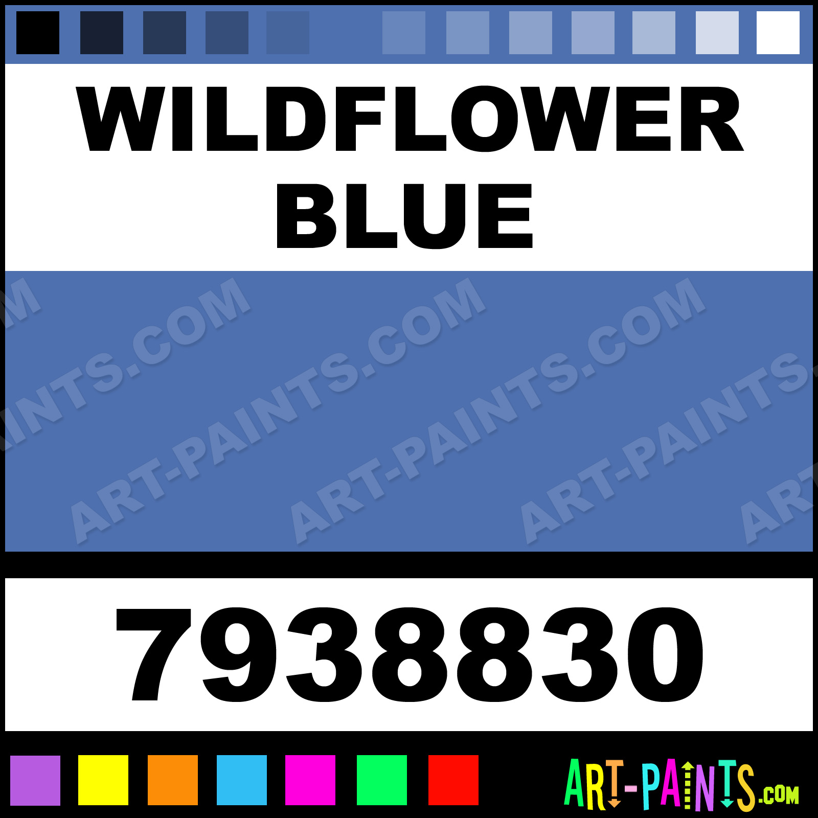 This beautiful Satin Finishes Spray Paint shade is called Wildflower Blue, and comes from a Aerosol company called American Accents. Their product number, along with the HTML color code, RGB, and CMYK codes are listed below. This Beautiful Shade of Wildflower Blue and others can be found in the American Accents Satin Finishes Art Paint Gallery! Also be sure to browse through the other wonderful Professional Color Galleries which are great for Decorative Art or Graffiti Art to see more of American Accents Satin Finishes Spray Paints, Brands and other Aerosol Paint Manufacturers. And as always, Paint Paint Paint!   -Art-Paints.com
