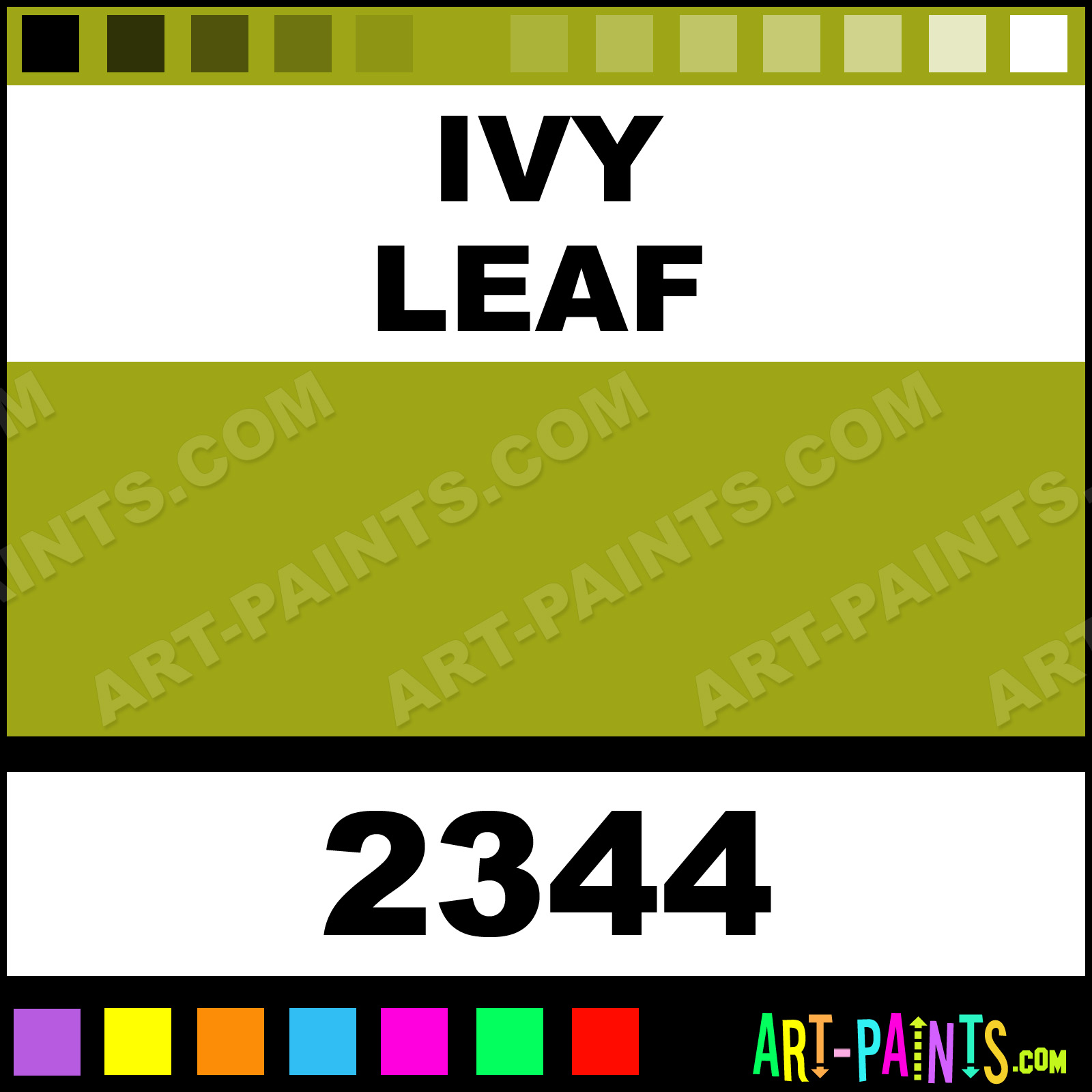 This beautiful Fusion For Plastic Spray Paint shade is called Ivy Leaf, and comes from a Aerosol company called Krylon. Their product number, along with the HTML color code, RGB, and CMYK codes are listed below. This Beautiful Shade of Ivy Leaf and others can be found in the Krylon Fusion For Plastic Art Paint Gallery! Also be sure to browse through the other wonderful Professional Color Galleries which are great for Decorative Art or Graffiti Art to see more of Krylon Fusion For Plastic Spray Paints, Brands and other Aerosol Paint Manufacturers. And as always, Paint Paint Paint!   -Art-Paints.com
