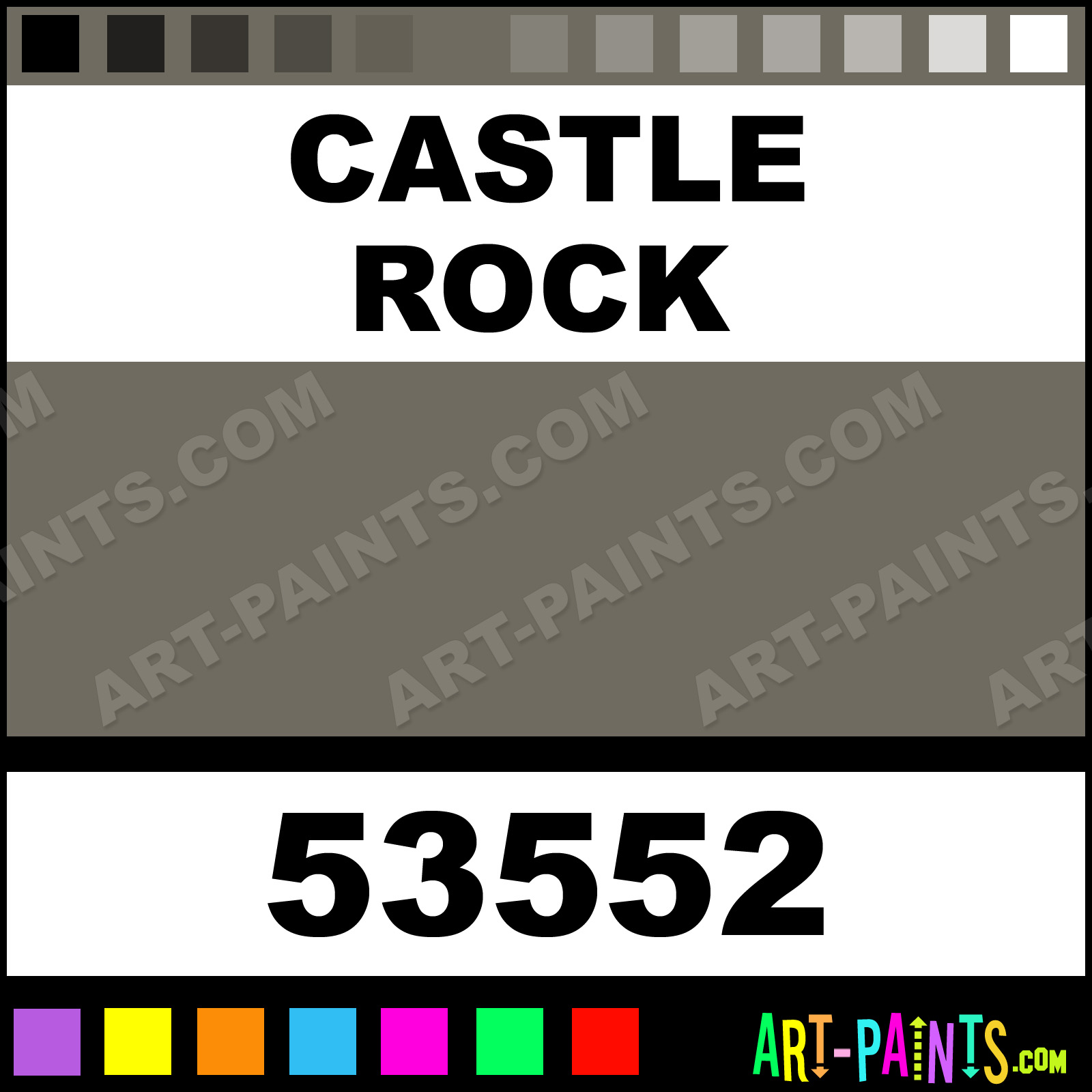 This beautiful Indoor Outdoor Spray Paint shade is called Castle Rock, and comes from a Aerosol company called Krylon. Their product number, along with the HTML color code, RGB, and CMYK codes are listed below. This Beautiful Shade of Castle Rock and others can be found in the Krylon Indoor Outdoor Art Paint Gallery! Also be sure to browse through the other wonderful Professional Color Galleries which are great for Decorative Art or Graffiti Art to see more of Krylon Indoor Outdoor Spray Paints, Brands and other Aerosol Paint Manufacturers. And as always, Paint Paint Paint!   -Art-Paints.com