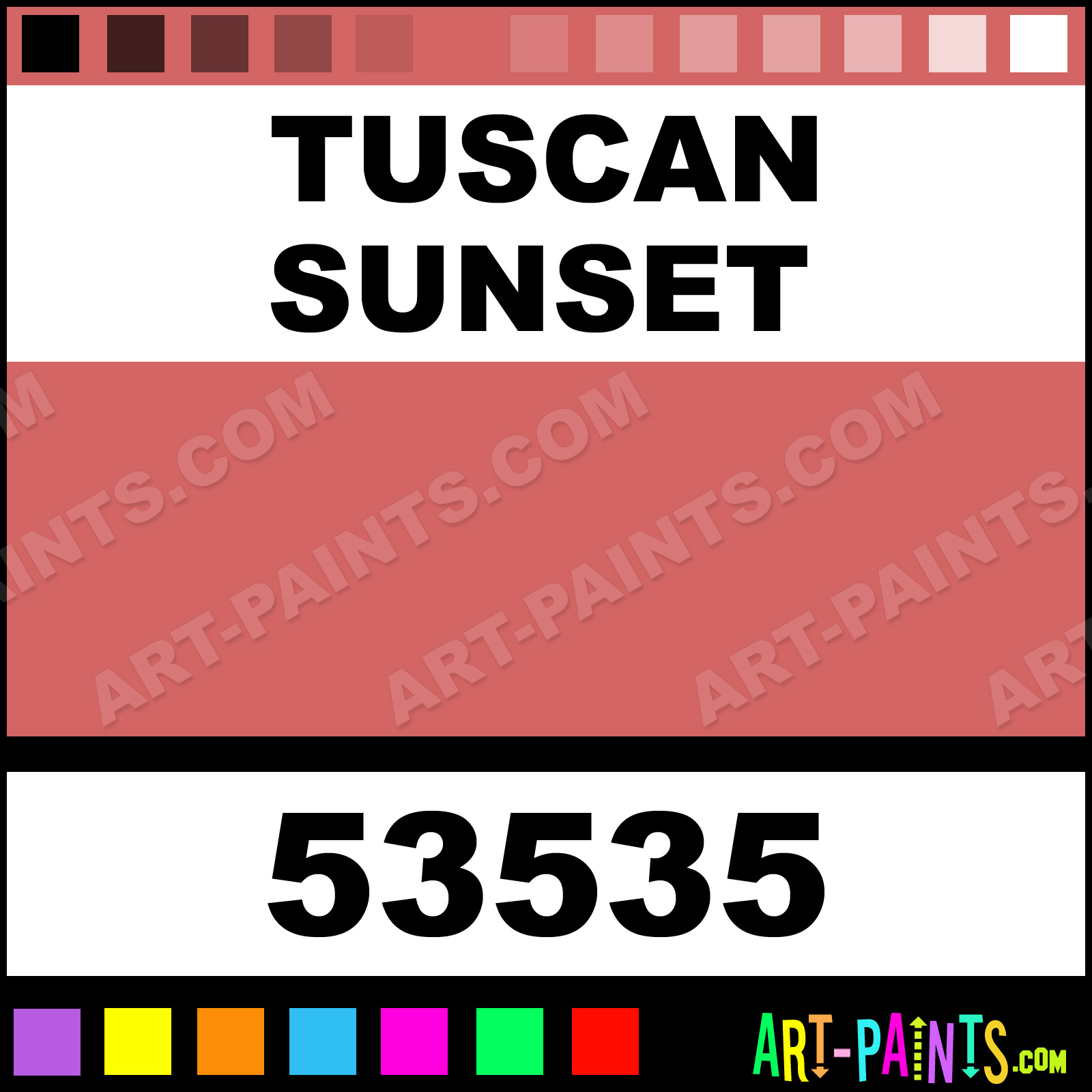 This beautiful Indoor Outdoor Spray Paint shade is called Tuscan Sunset, and comes from a Aerosol company called Krylon. Their product number, along with the HTML color code, RGB, and CMYK codes are listed below. This Beautiful Shade of Tuscan Sunset and others can be found in the Krylon Indoor Outdoor Art Paint Gallery! Also be sure to browse through the other wonderful Professional Color Galleries which are great for Decorative Art or Graffiti Art to see more of Krylon Indoor Outdoor Spray Paints, Brands and other Aerosol Paint Manufacturers. And as always, Paint Paint Paint!   -Art-Paints.com