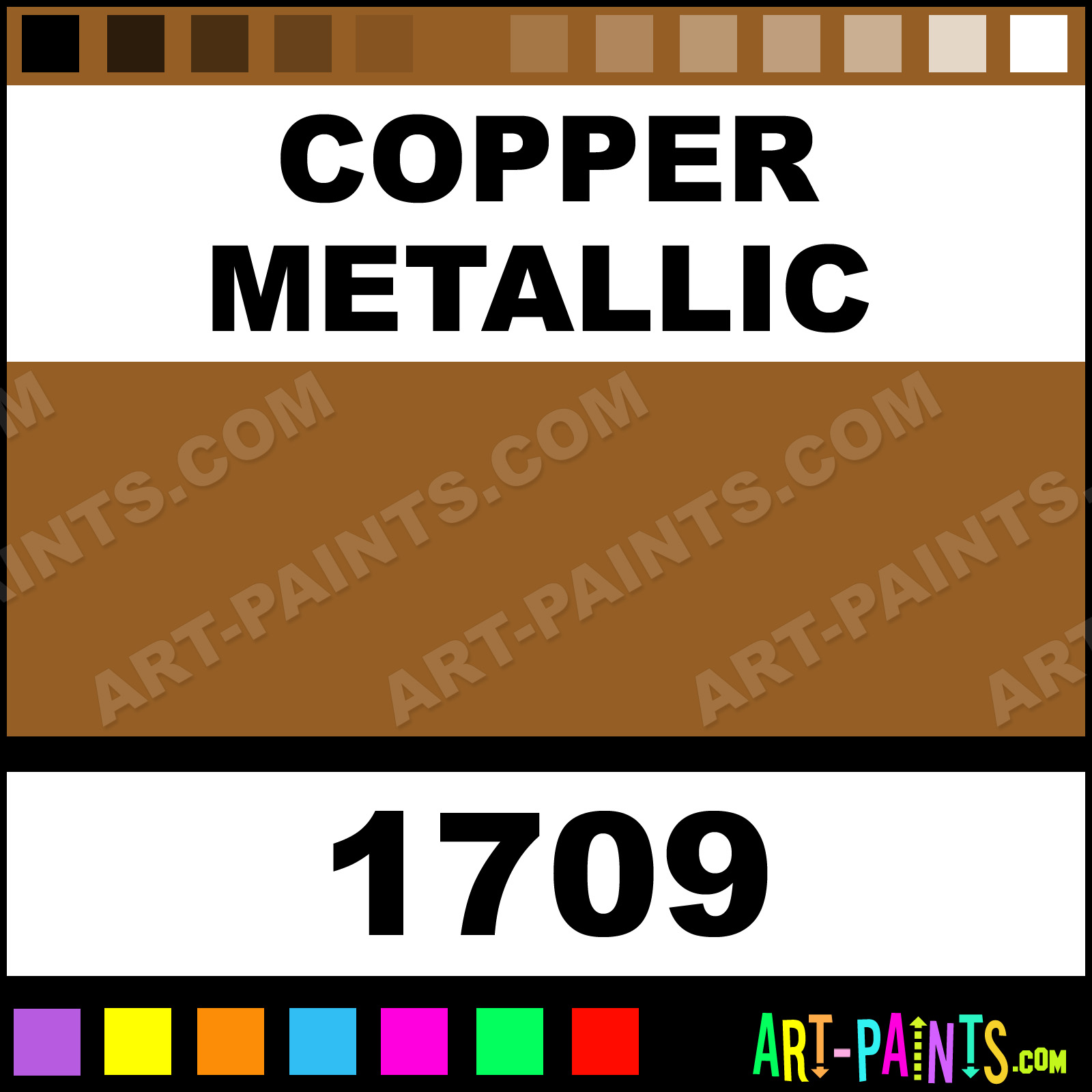 This beautiful Metallic Spray Paint shade is called Copper Metallic, and comes from a Aerosol company called Krylon. Their product number, along with the HTML color code, RGB, and CMYK codes are listed below. This Beautiful Shade of Copper Metallic and others can be found in the Krylon Metallic Art Paint Gallery! Also be sure to browse through the other wonderful Professional Color Galleries which are great for Decorative Art or Graffiti Art to see more of Krylon Metallic Spray Paints, Brands and other Aerosol Paint Manufacturers. And as always, Paint Paint Paint!   -Art-Paints.com