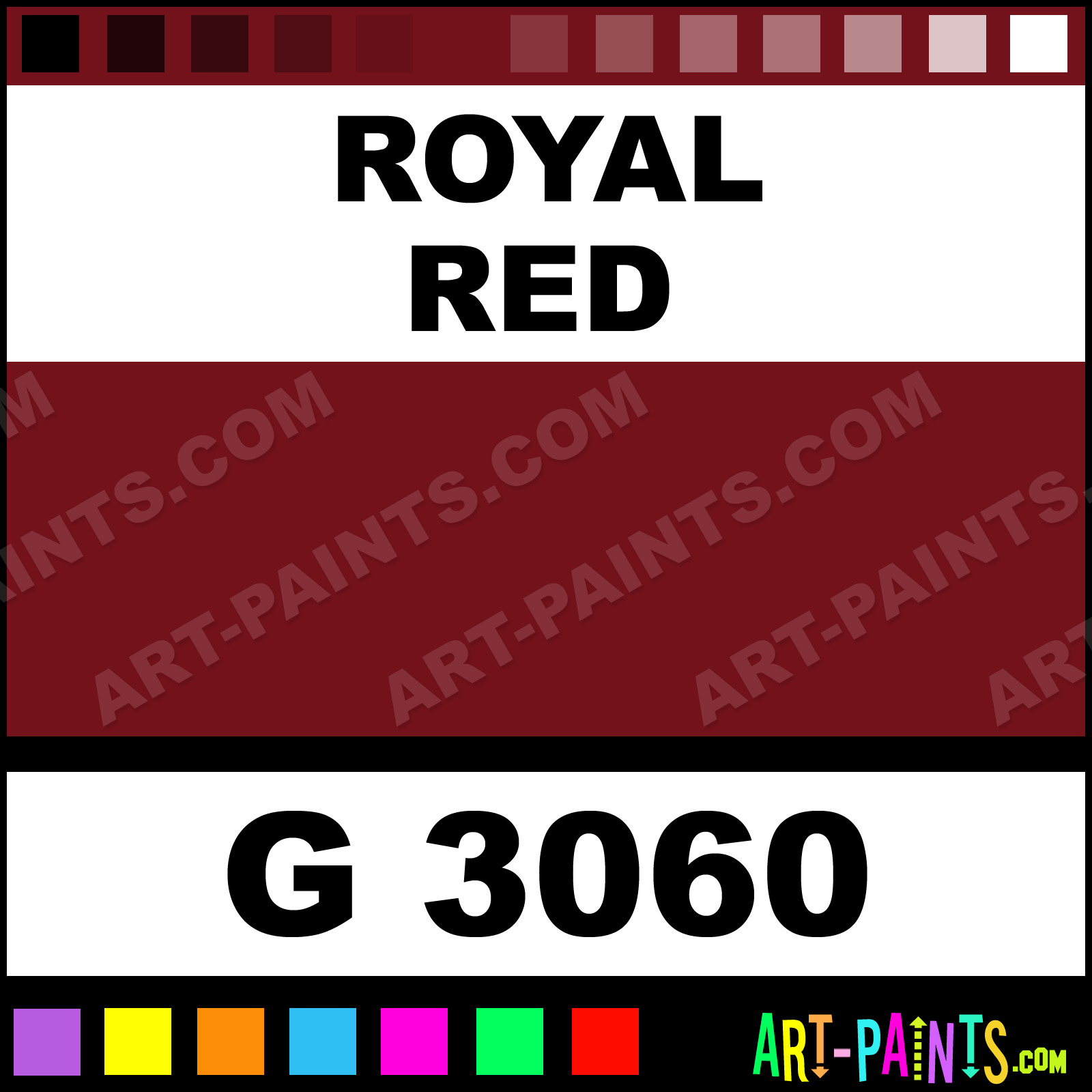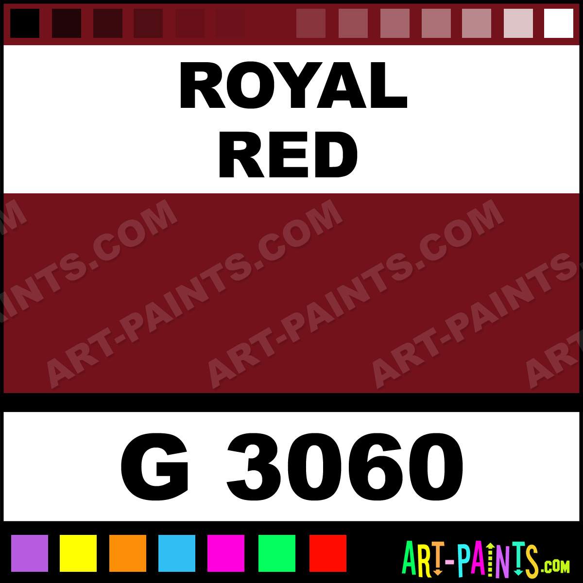 This beautiful Gold Line Spray Paint shade is called Royal Red, and comes from a Aerosol company called Montana. Their product number, along with the HTML color code, RGB, and CMYK codes are listed below. This Beautiful Shade of Royal Red and others can be found in the Montana Gold Line Art Paint Gallery! Also be sure to browse through the other wonderful Professional Color Galleries which are great for Decorative Art or Graffiti Art to see more of Montana Gold Line Spray Paints, Brands and other Aerosol Paint Manufacturers. And as always, Paint Paint Paint!   -Art-Paints.com